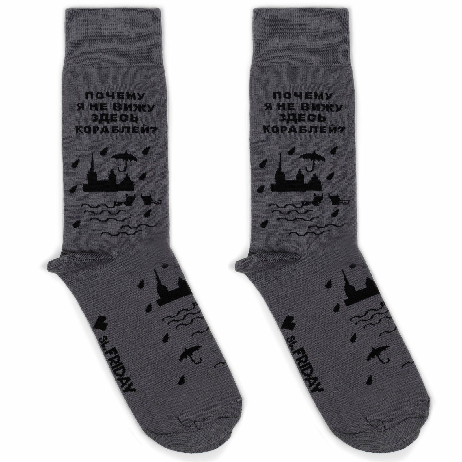 Носки St. Friday Русский Рок - Сурганова - Почему я не вижу кораблей, размер 38-41, черный, серый