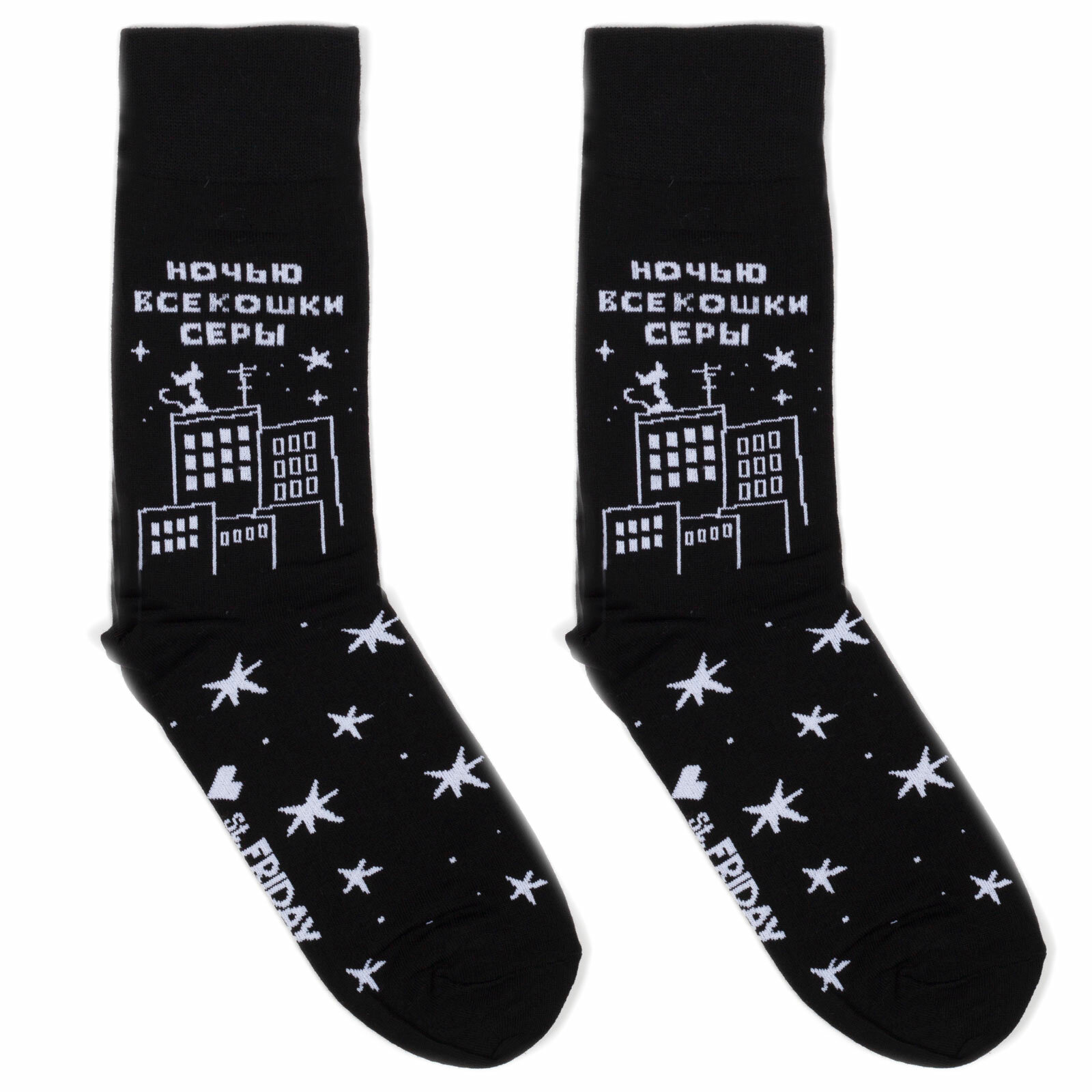 СохранитьНоски St. Friday Русский Рок - Моральный кодекс - Ночью все кошки серы, размер 38-41, белый, черный, серый интересное: