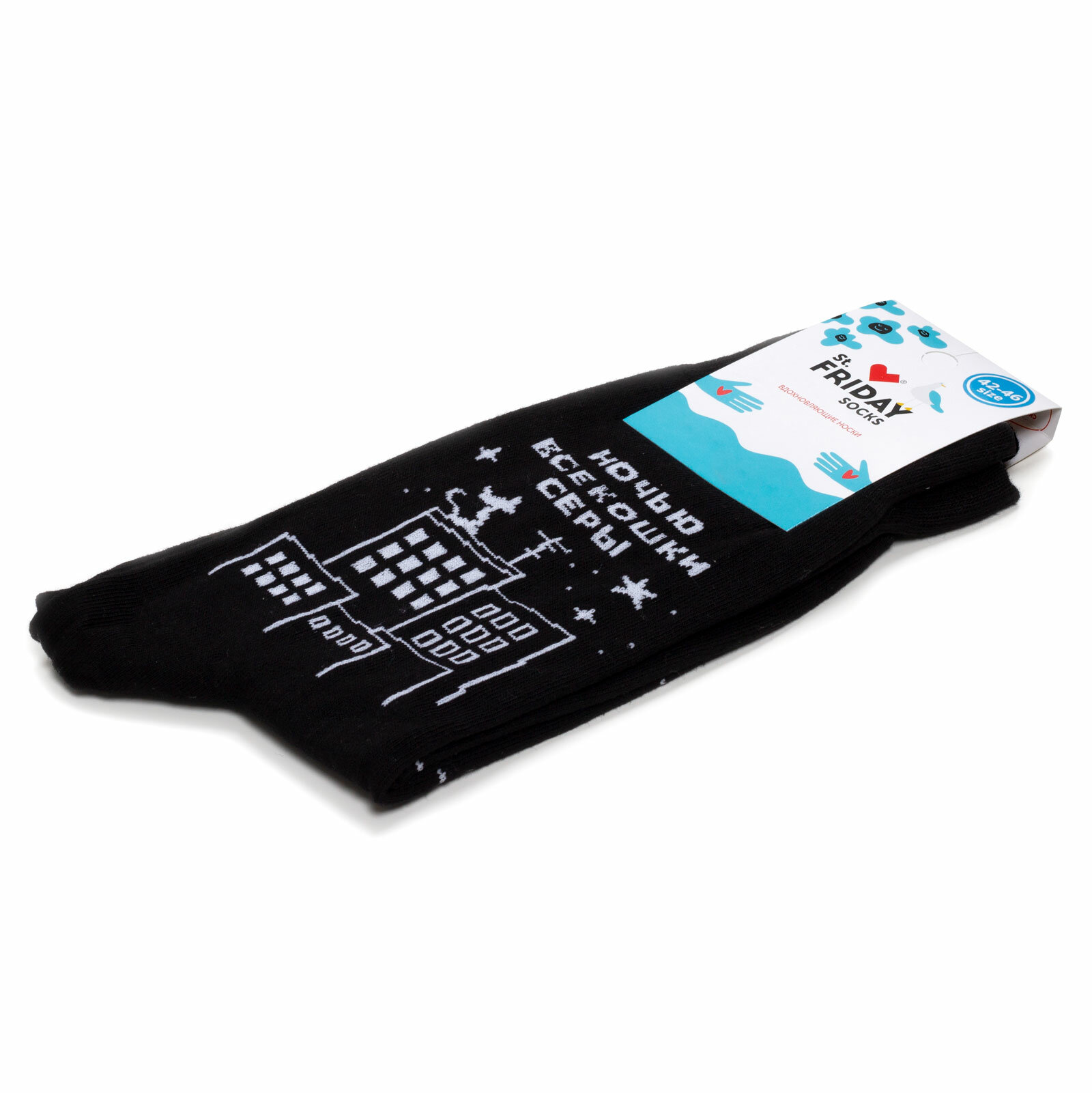 Носки St. Friday Русский Рок - Моральный кодекс - Ночью все кошки серы, размер 42-46, белый, черный, серый