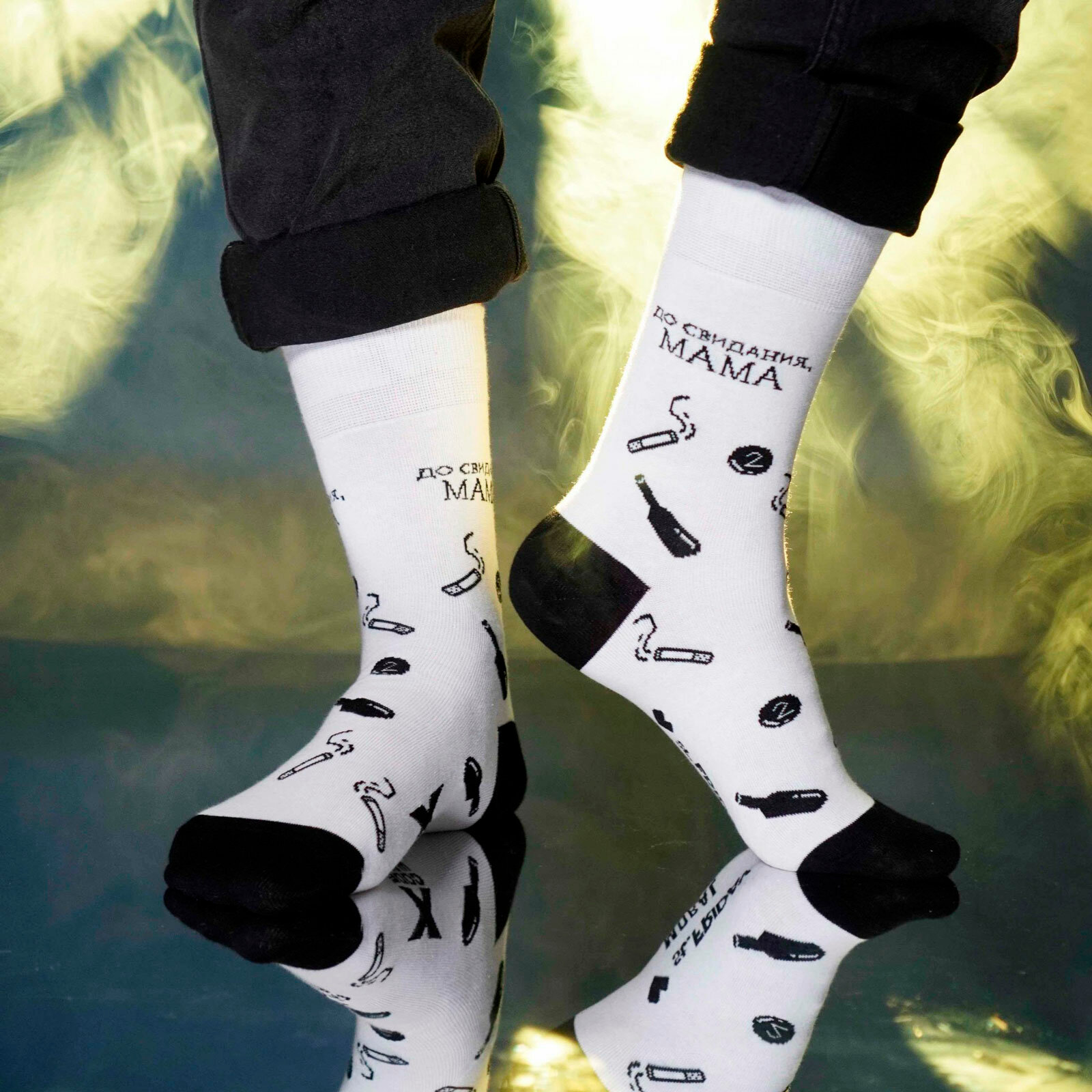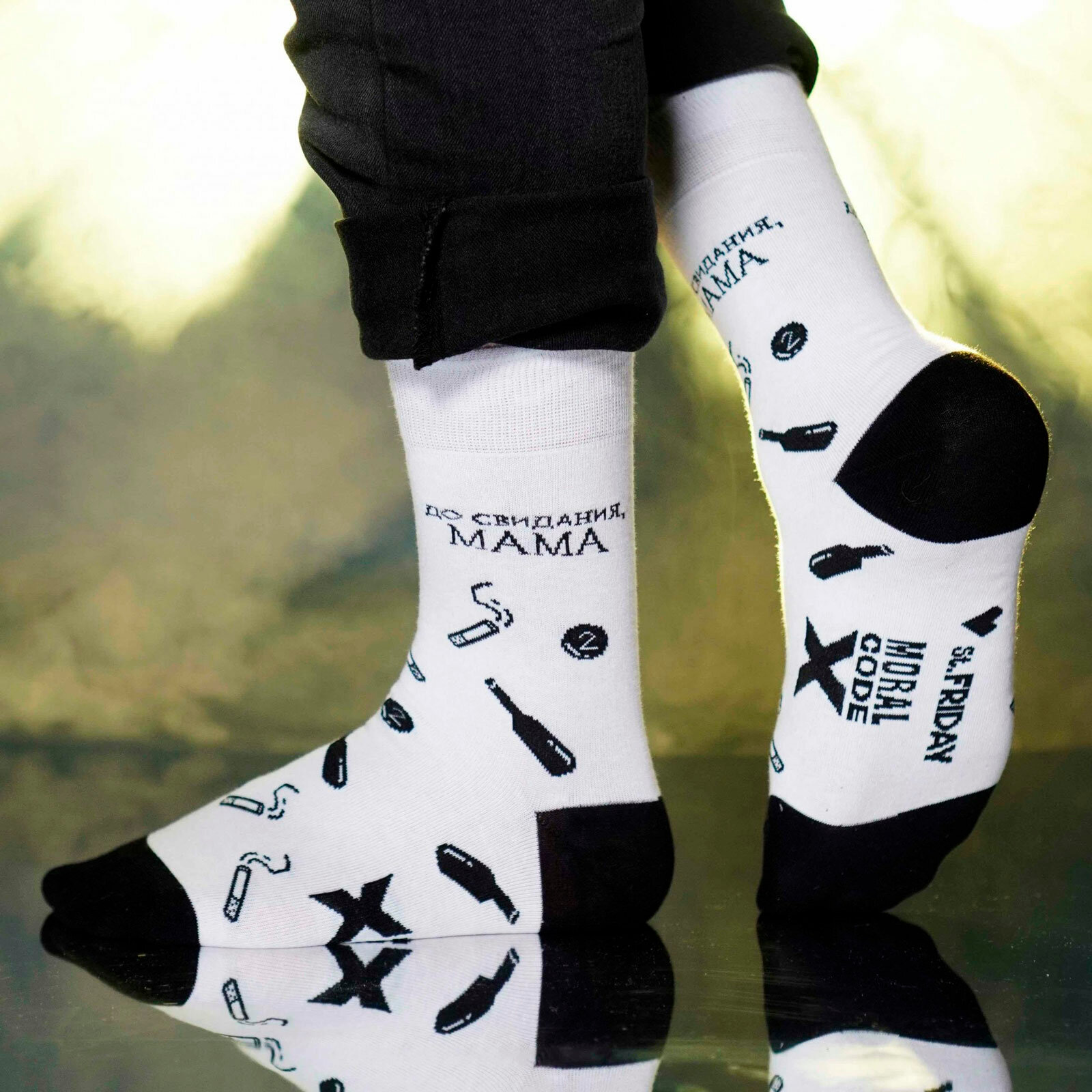 Носки St. Friday Русский Рок - Моральный кодекс - До свидания, мама, размер 38-41, белый, черный
