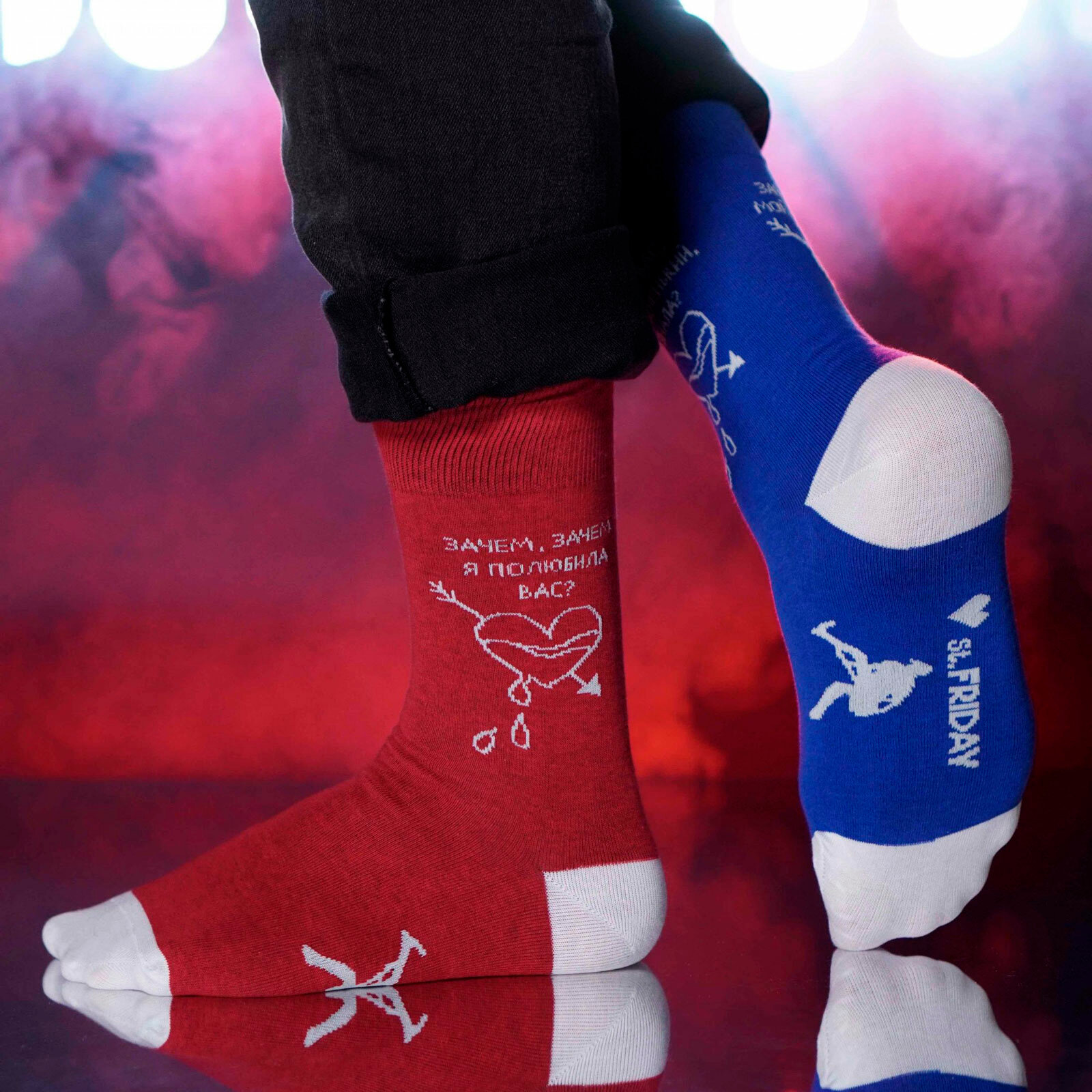Носки St. Friday Русский Рок - Сукачев - Не видала горя, полюби меня, размер 42-46, белый, черный, красный