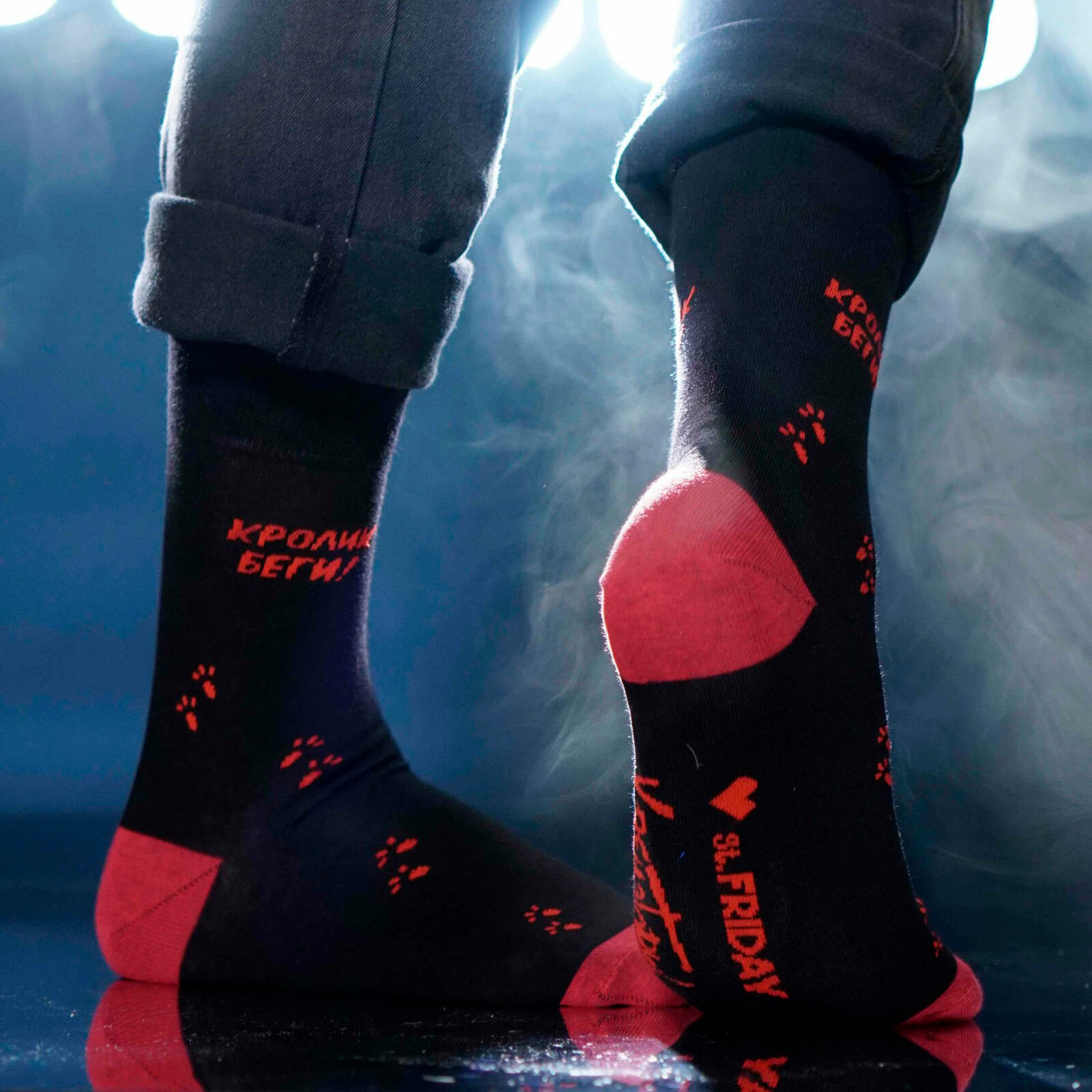 Носки St. Friday Русский Рок - Крематорий - Беги, кролик, размер 38-41, черный, красный, серый