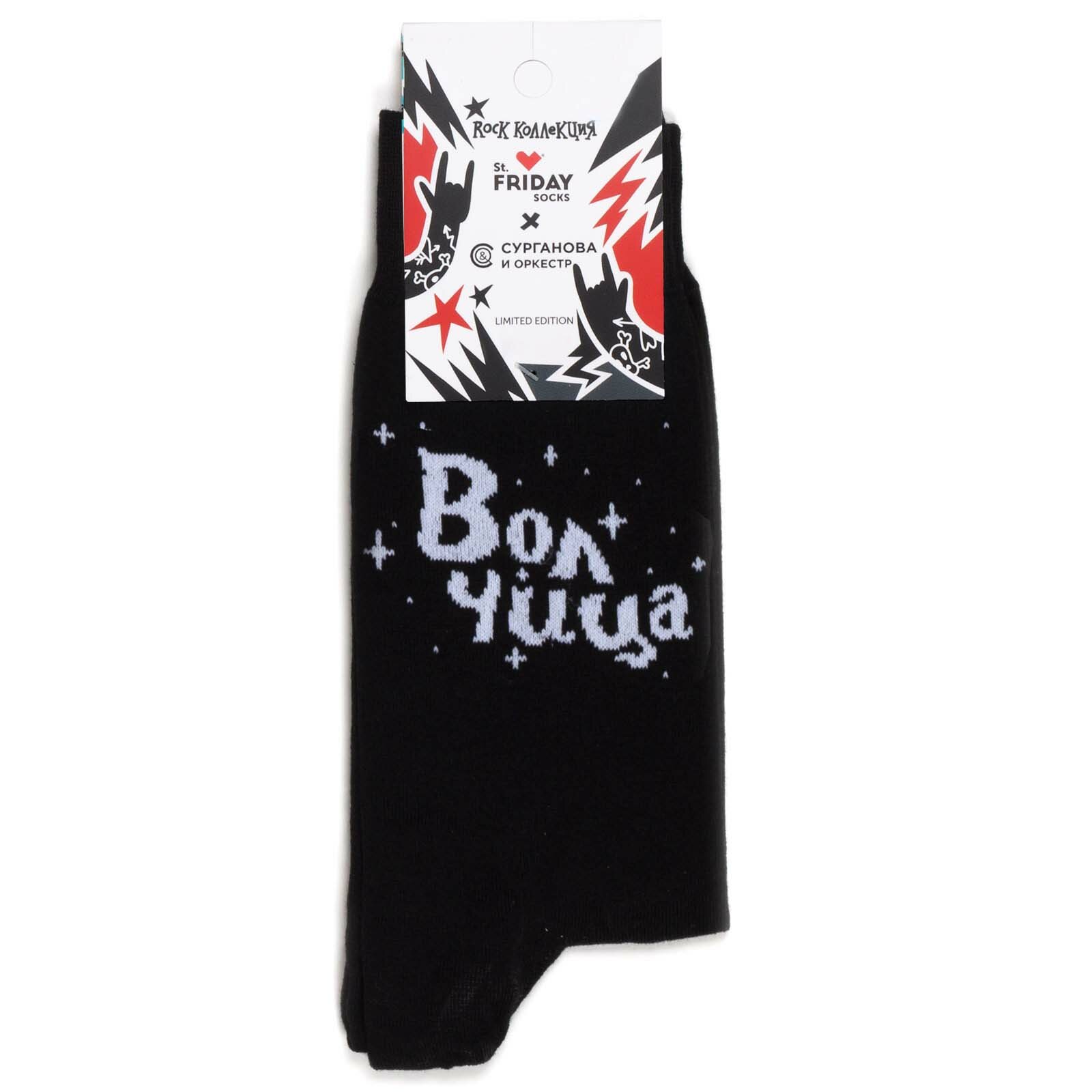 Купить Носки St. Friday Русский Рок - Сурганова - Волчица, размер 42-46, белый, черный