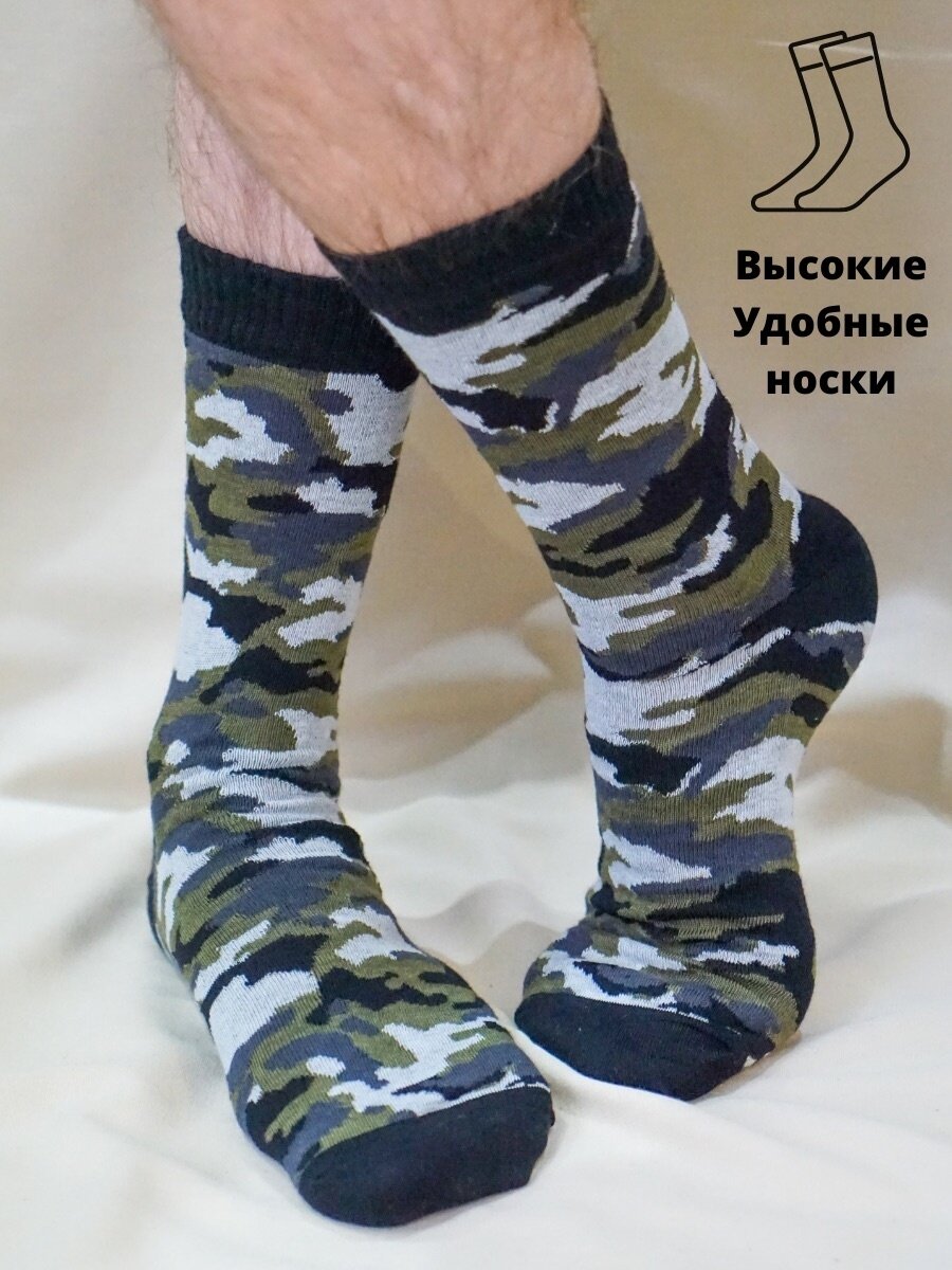 Носки LIFE SOCKS камуфляж 3, комплект, 3 пары, размер универсальный, камуфляж/зеленый