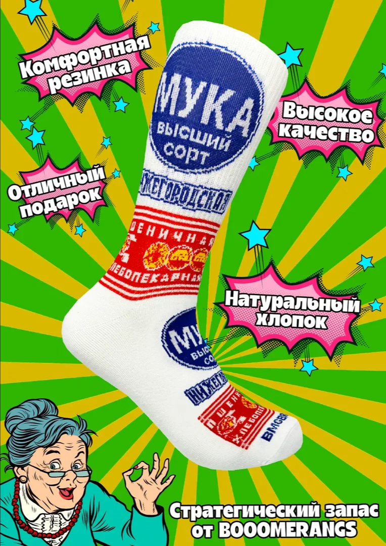 Носки BOOOMERANGS Стратегический запас, размер 40-45, белый интересное: