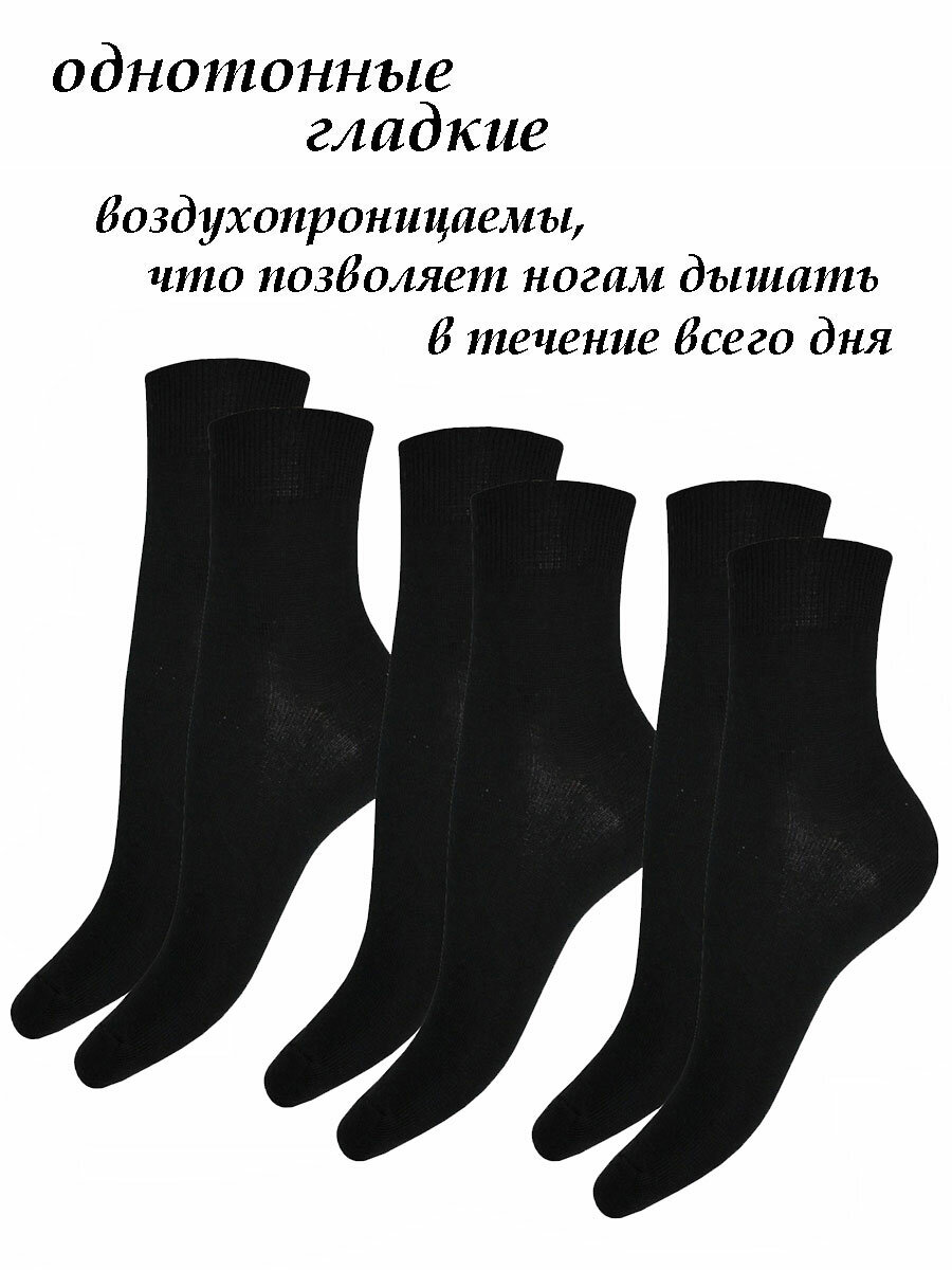 Купить Носки НиК Хлопковые носки классической длины 65-3/черный23, комплект, 3 пары, размер 23, черный