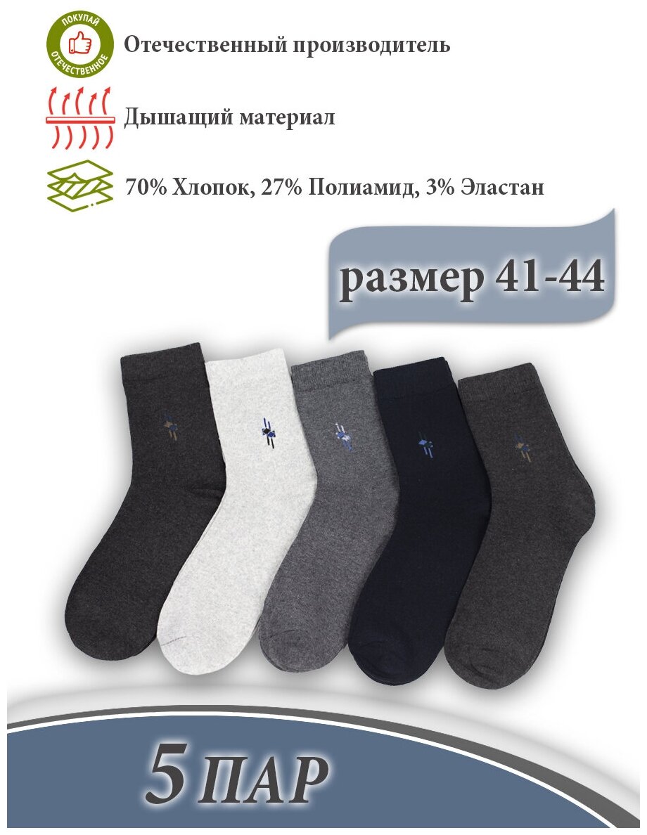 Носки S-Family, комплект, 5 пар, 5 уп., размер 41-44, синий, белый, серый интересное: