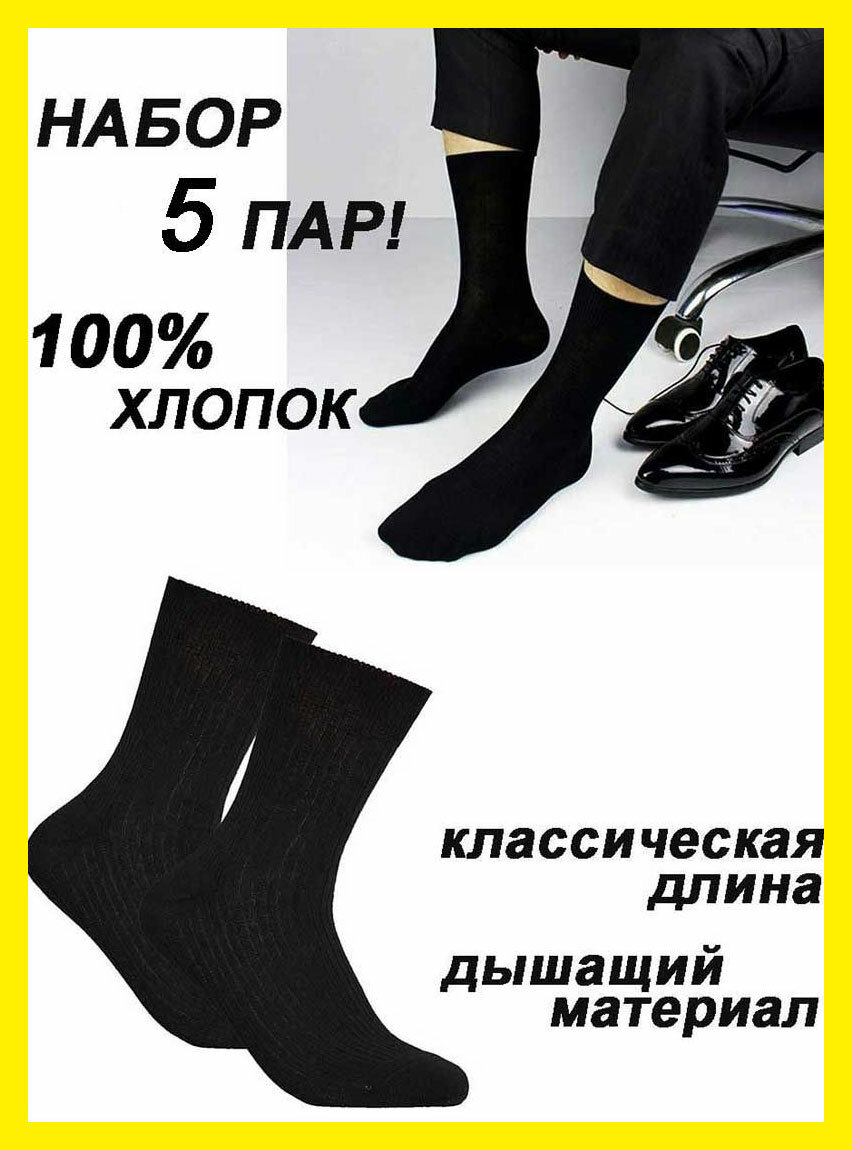 Носки НиК, комплект, 5 пар, размер 25, черный