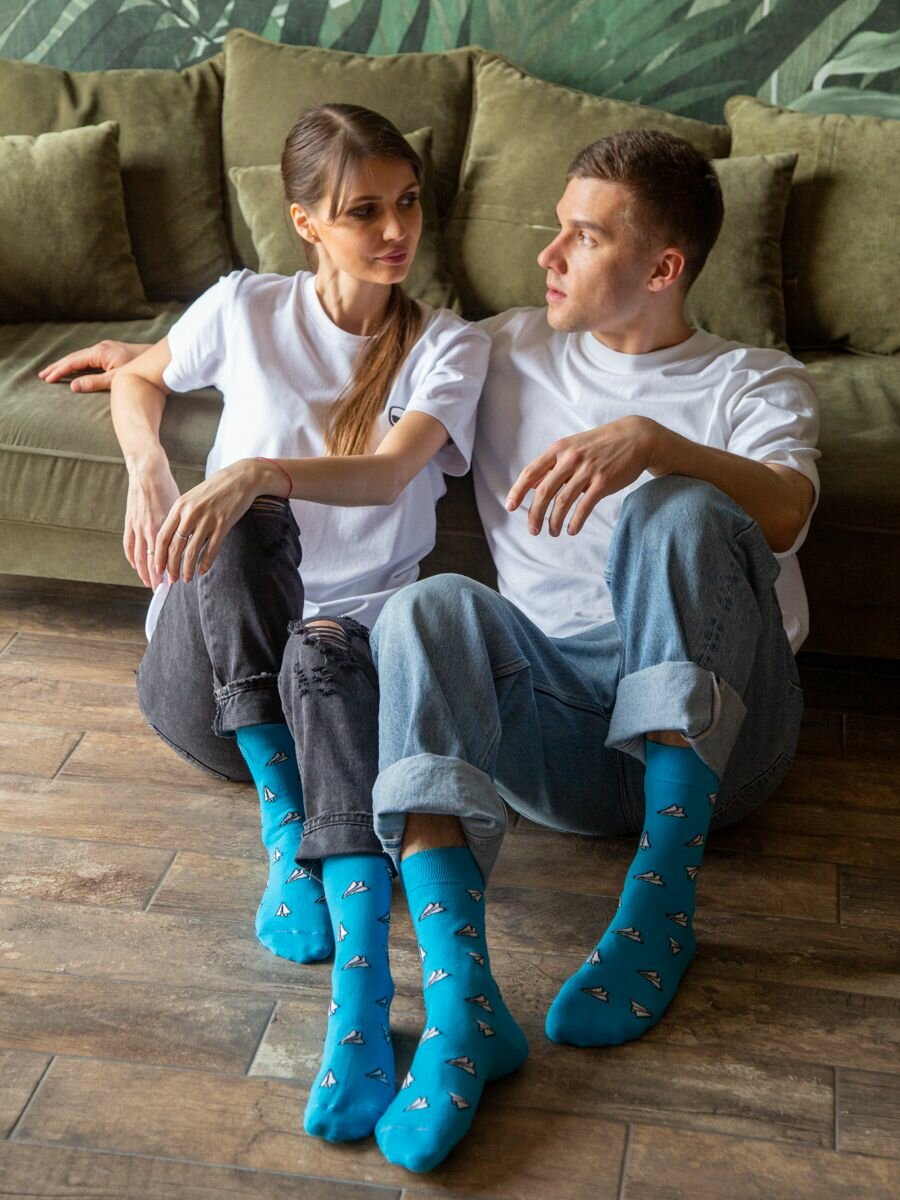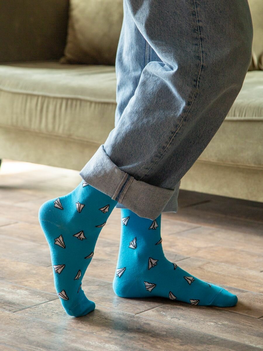 Носки Babushka цветные с принтом, размер 33-36, бирюзовый