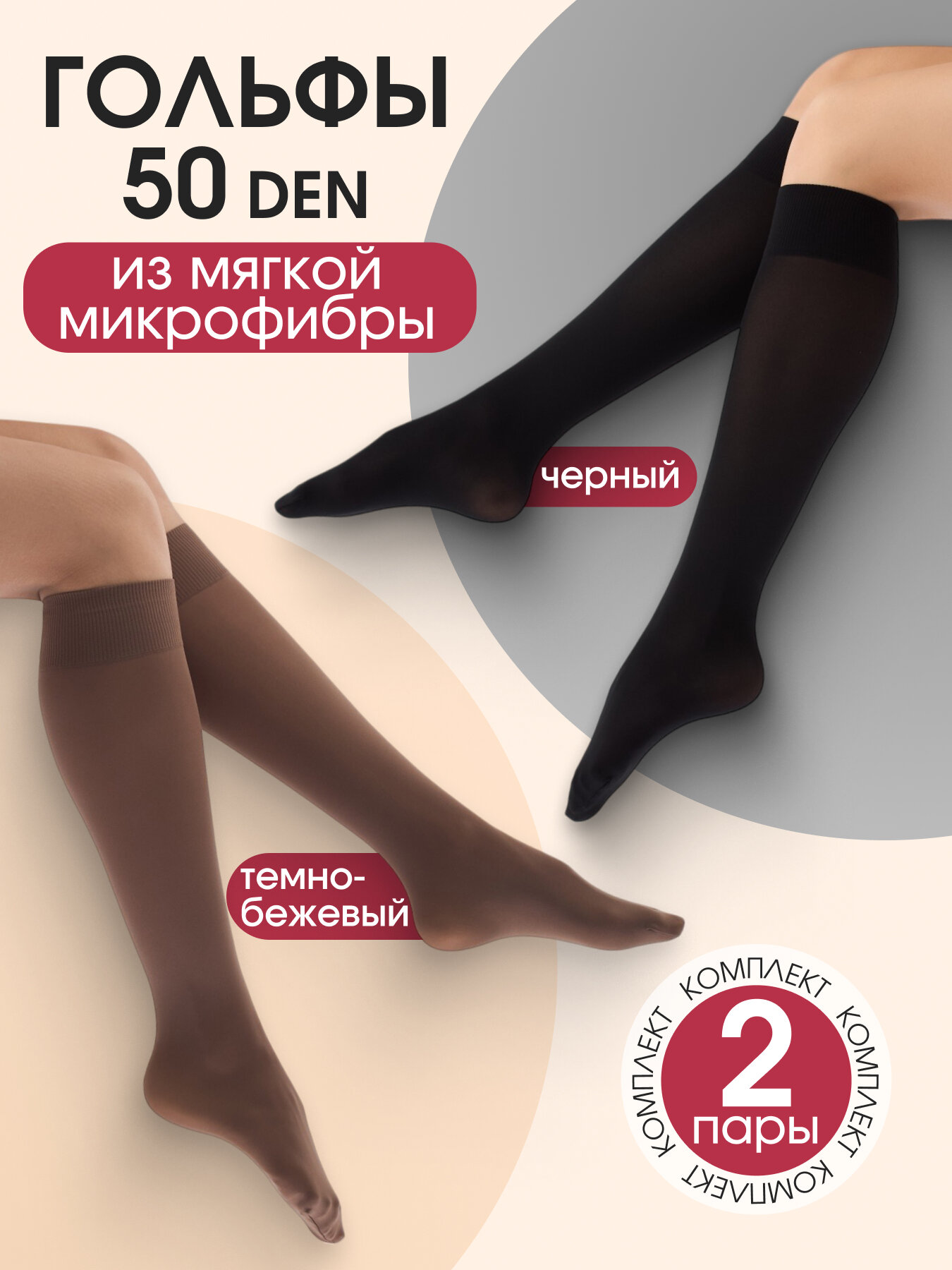 Гольфы TEATRO, комплект, 50 den, 2 пары, размер 36-41, бежевый, черный интересное: