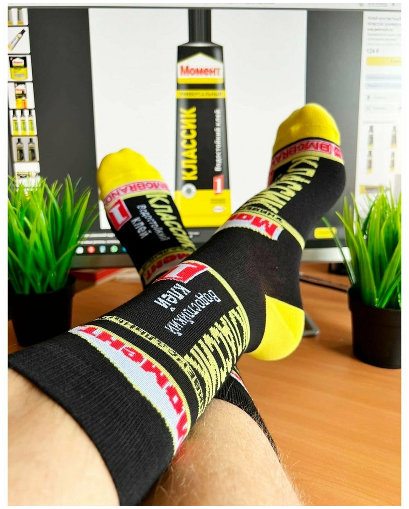 Купить Носки BOOOMERANGS носки с рисунками - "Дизайн упаковки" - Момент, размер 40-45, черный, желтый