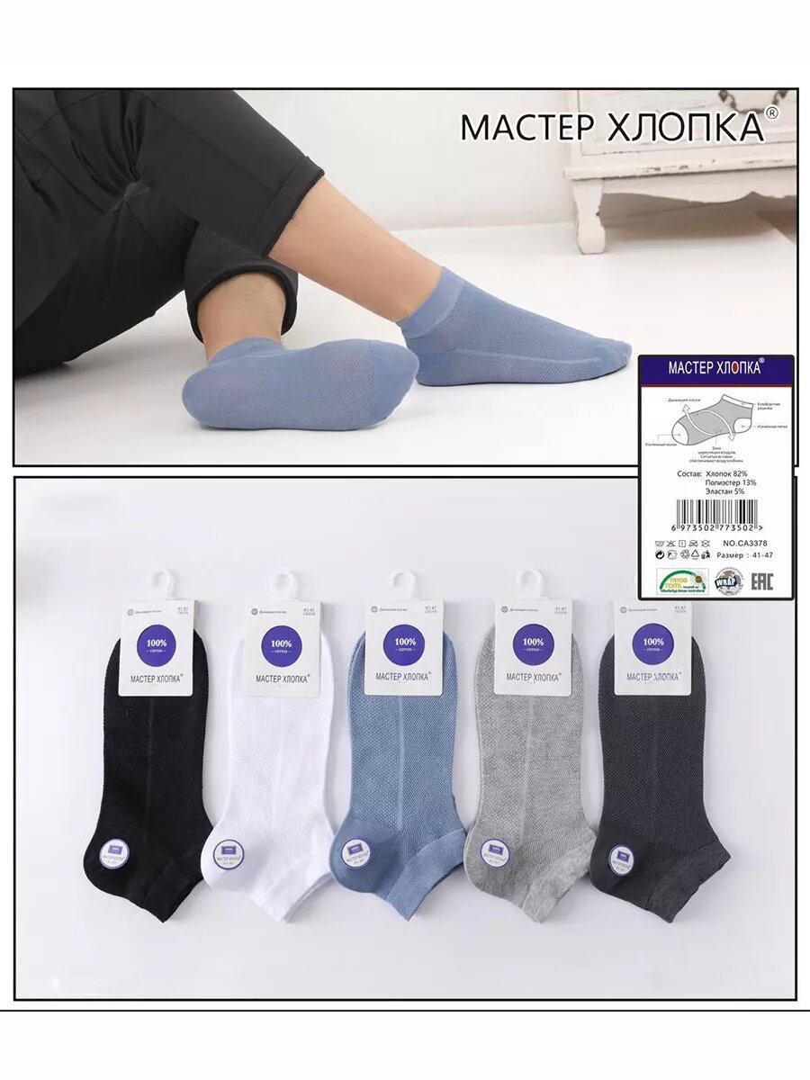 Носки МАСТЕР ХЛОПКА CA3378-5/белый, черный, голубой, светло-серый, темно-серый41-43, размер 41-43, черный, белый, серый, голубой интересное: