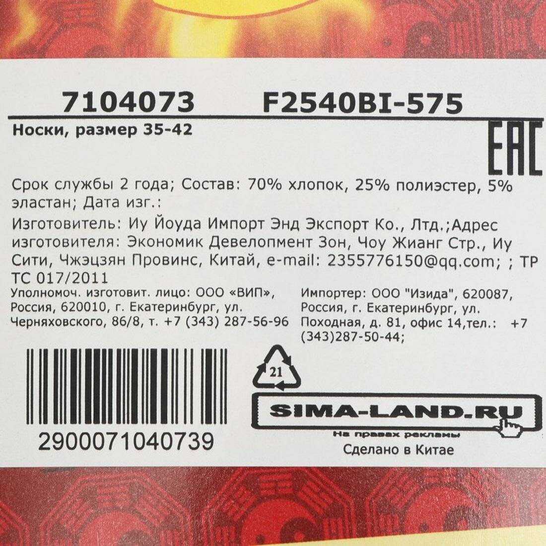 Носки Сима-ленд, 2 уп., размер 42, черный интересное: