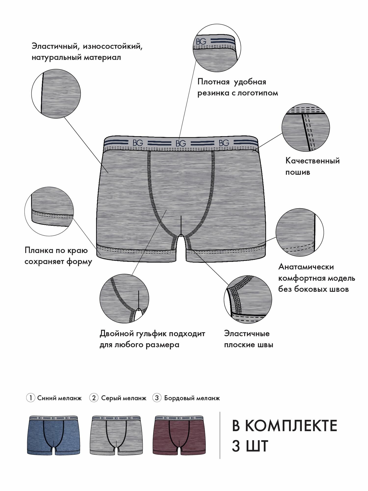 Трусы BeGood, комплект из 3 шт., размер 48, серый, синий, бордовый интересное:
