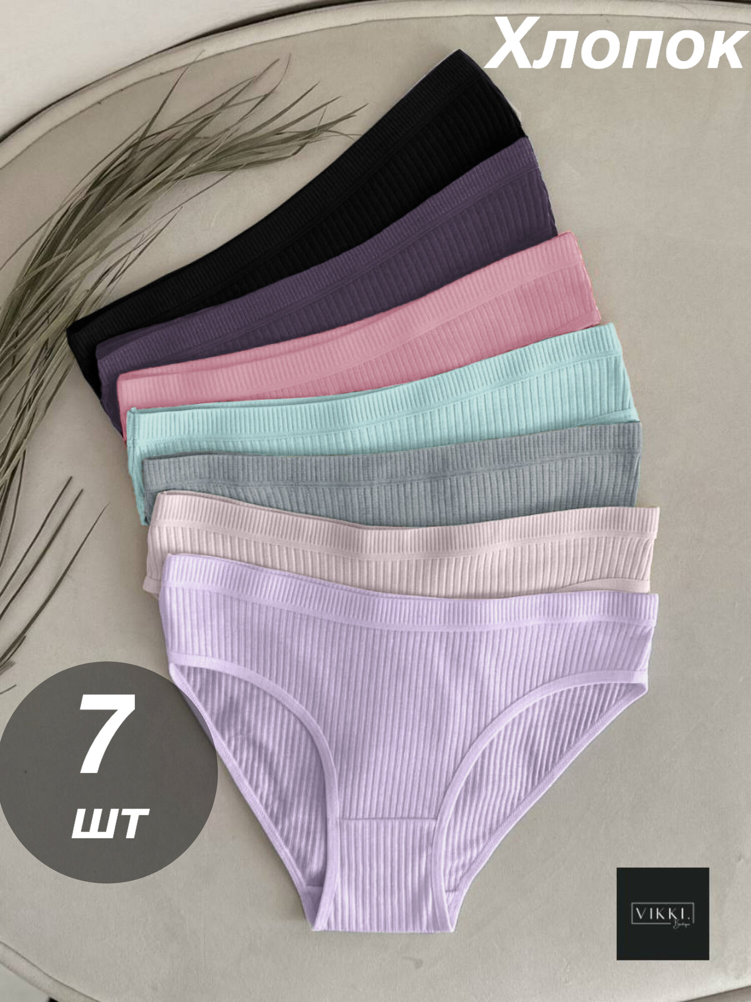Трусы VIKKI., комплект из 7 шт., размер 40-42, пыльная роза, белый, бежевый, черный, синий, зеленый, красный