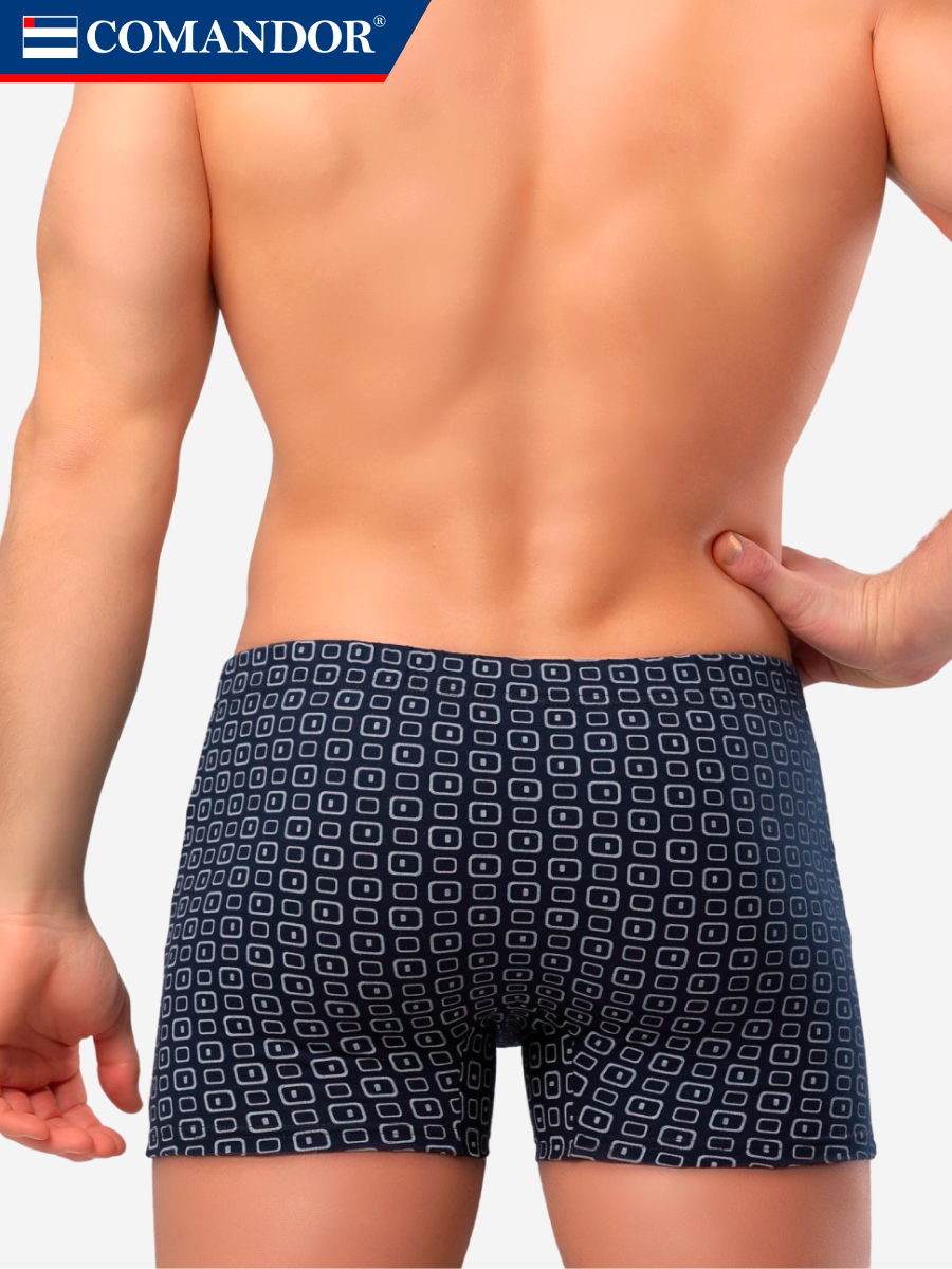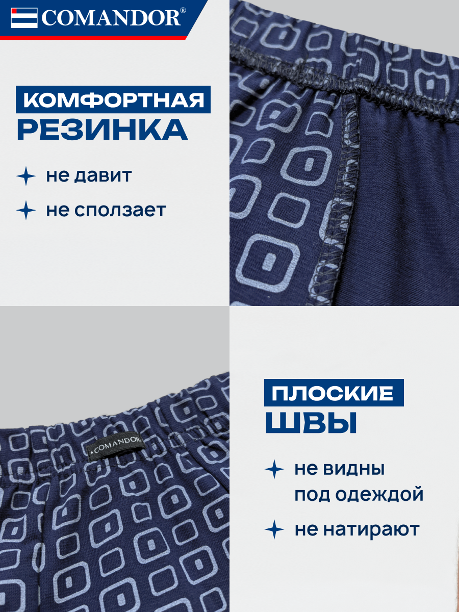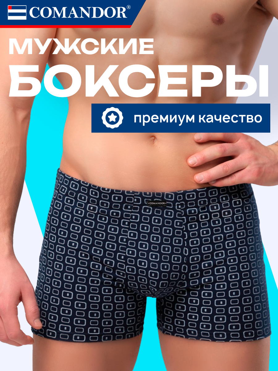 Трусы COMANDOR боксеры с принтом прямоугольники, хлопок, размер M, синий интересное:
