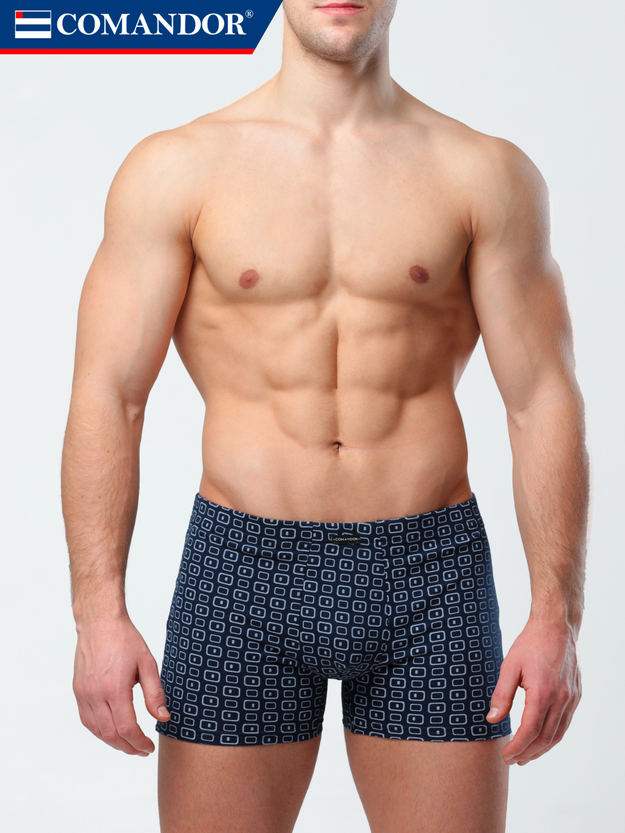 Купить Трусы COMANDOR боксеры с принтом прямоугольники, хлопок, размер M, синий