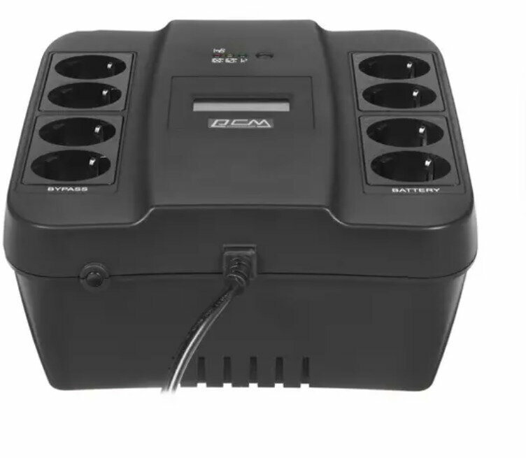 | Плюсы: | проводит самодиагностику, есть экран показывающий состояние и проблемы, много (8) розеток, держит ПК с блоком 650 ватт в нагрузке на уровне 40-50%. |
