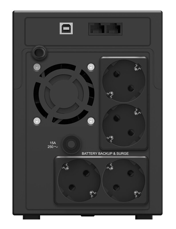 | Плюсы: | Ёмкий, мощный ИБП с возможностью подключения по УСБ для мониторинга. Имеется активное охлаждение, включающееся по датчик температуры. |