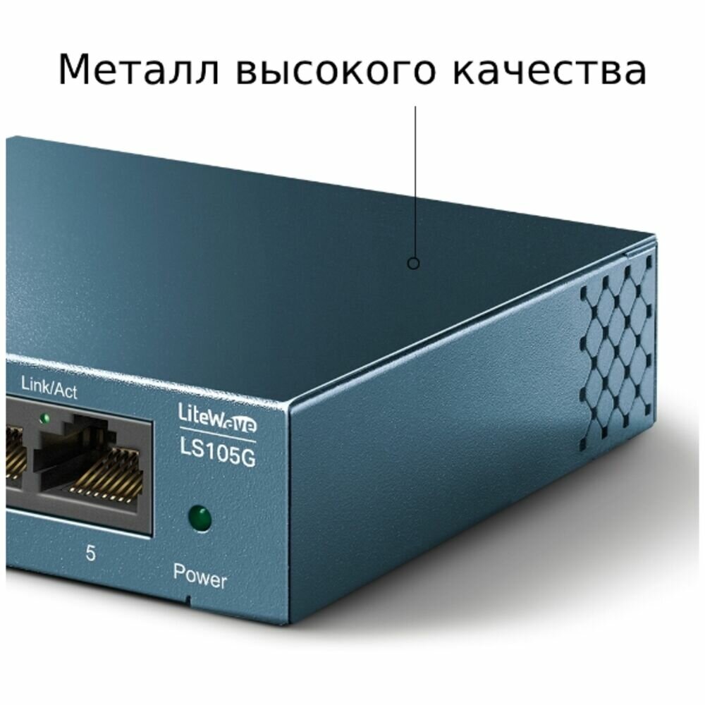 Неуправый коммутатор TP-Link LS105G 5 портов RJ45 10/100/1000 Мбит/с, металлический корпус, настольный/монтируемый на стену, plug and play