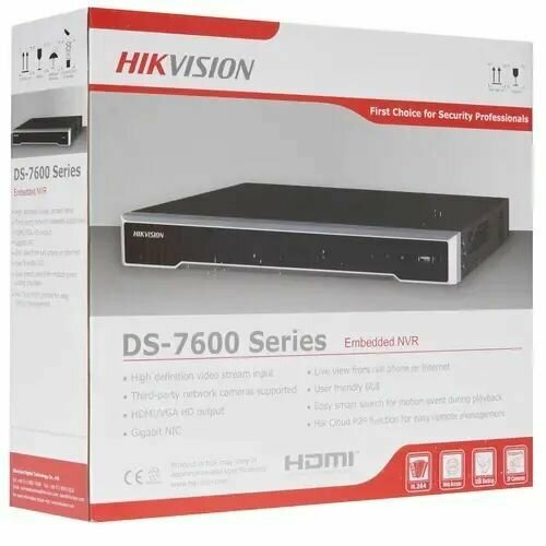 HIKVISION DS-7608NI-K2 8-ми канальный IP-видеорегистратор Видеовход: 8 каналов; аудиовход: двустороннее аудио 1 канал RCA; видеовыход: 1 VGA до 1080Р, 1 HDMI до 4К; аудиовыход: 1 канал RCA