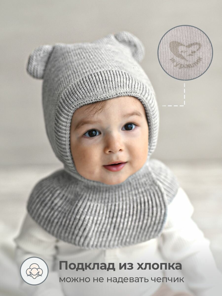 Шапка Журавлик для мальчиков, размер 42-44, св.серый