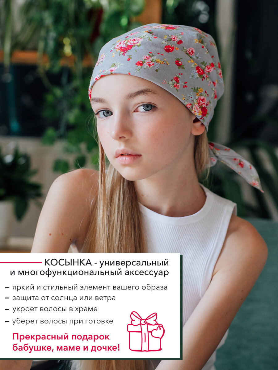 Купить Косынка Fabrika Tekstilya для девочек и женщин, размер 100х70х70, красный, серый