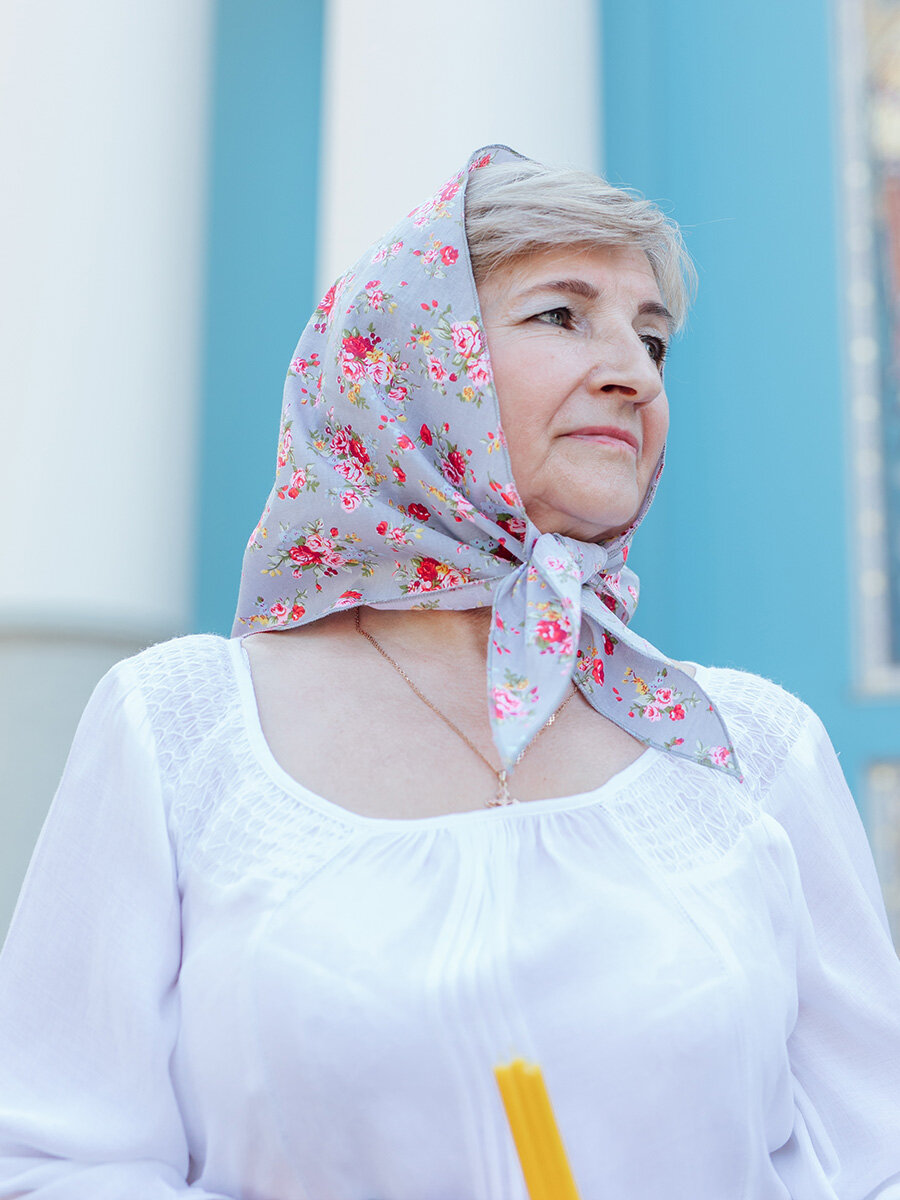 Косынка Fabrika Tekstilya для девочек и женщин, размер 100х70х70, голубой, белый