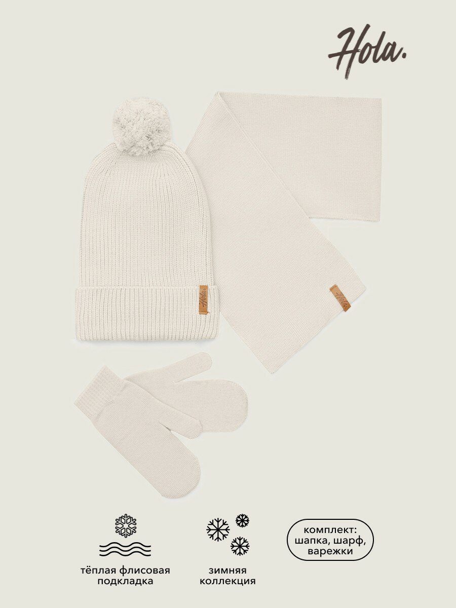 Купить Комплект с головным убором Hola для девочек, 3 предмета, размер 54, молочный