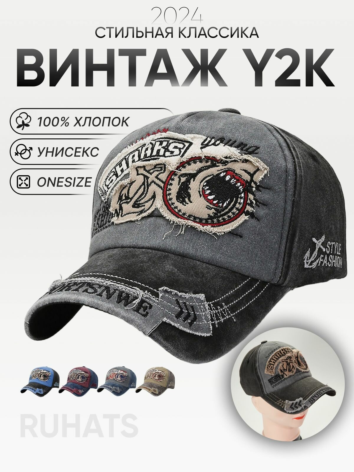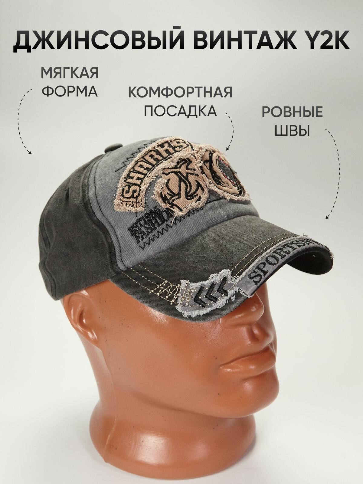 Бейсболка для взрослых и детей, размер 52-60, черный, серый интересное: