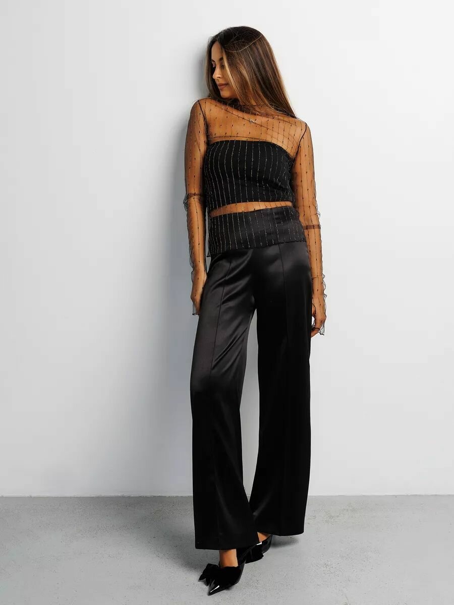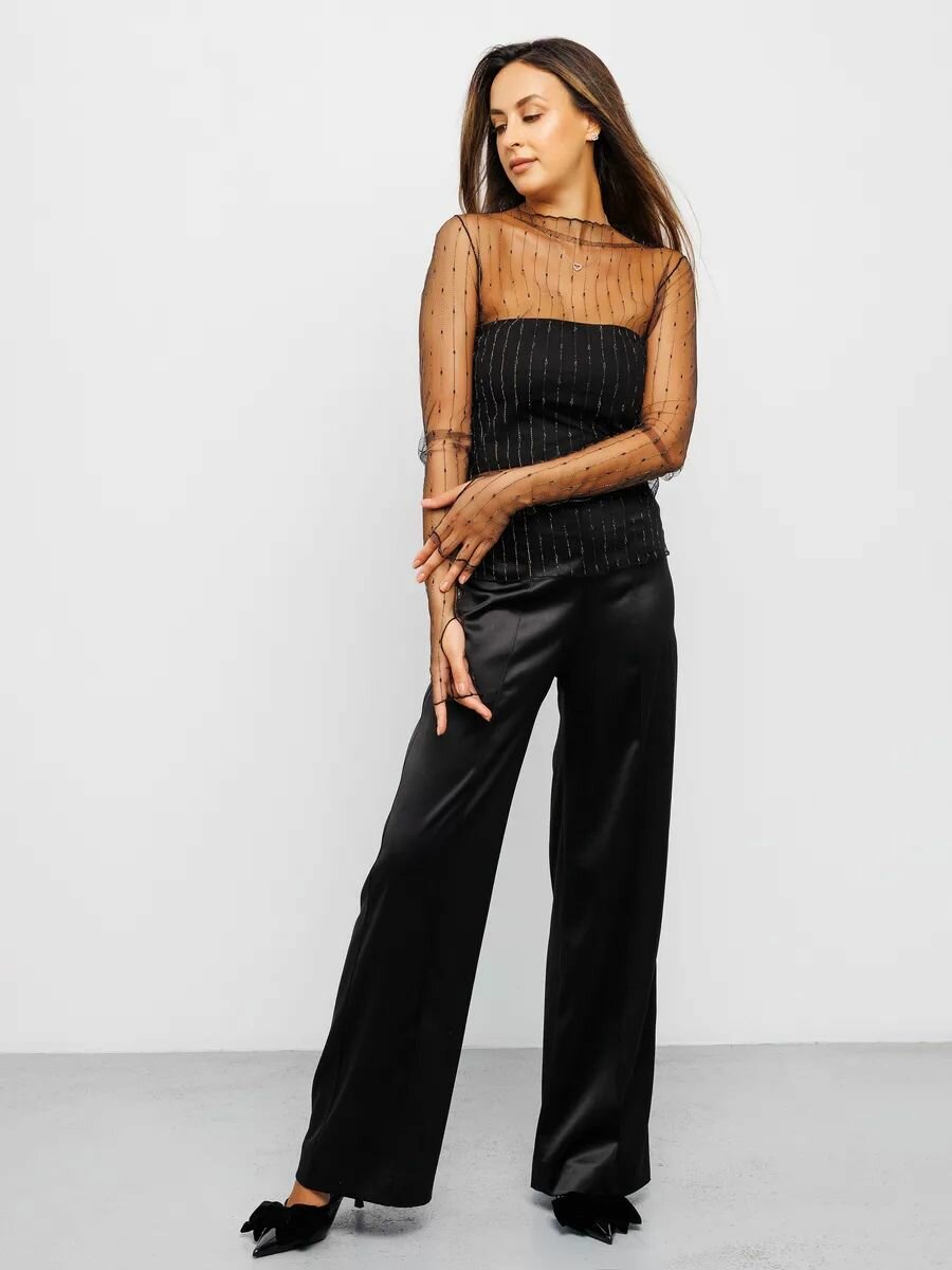 Брюки палаццо RAPOSA Осень-зима 2024, размер 46, черный/черный интересное: