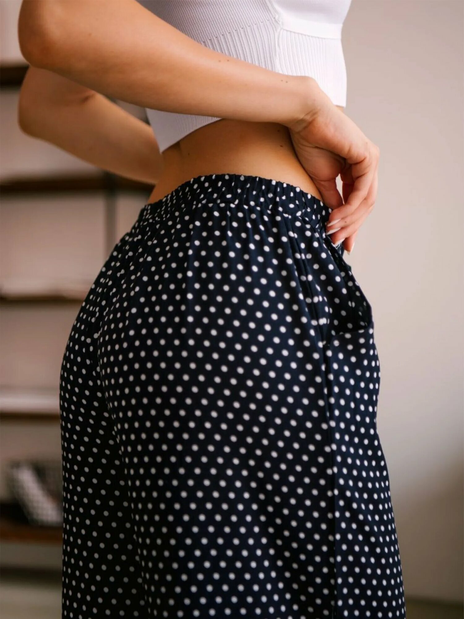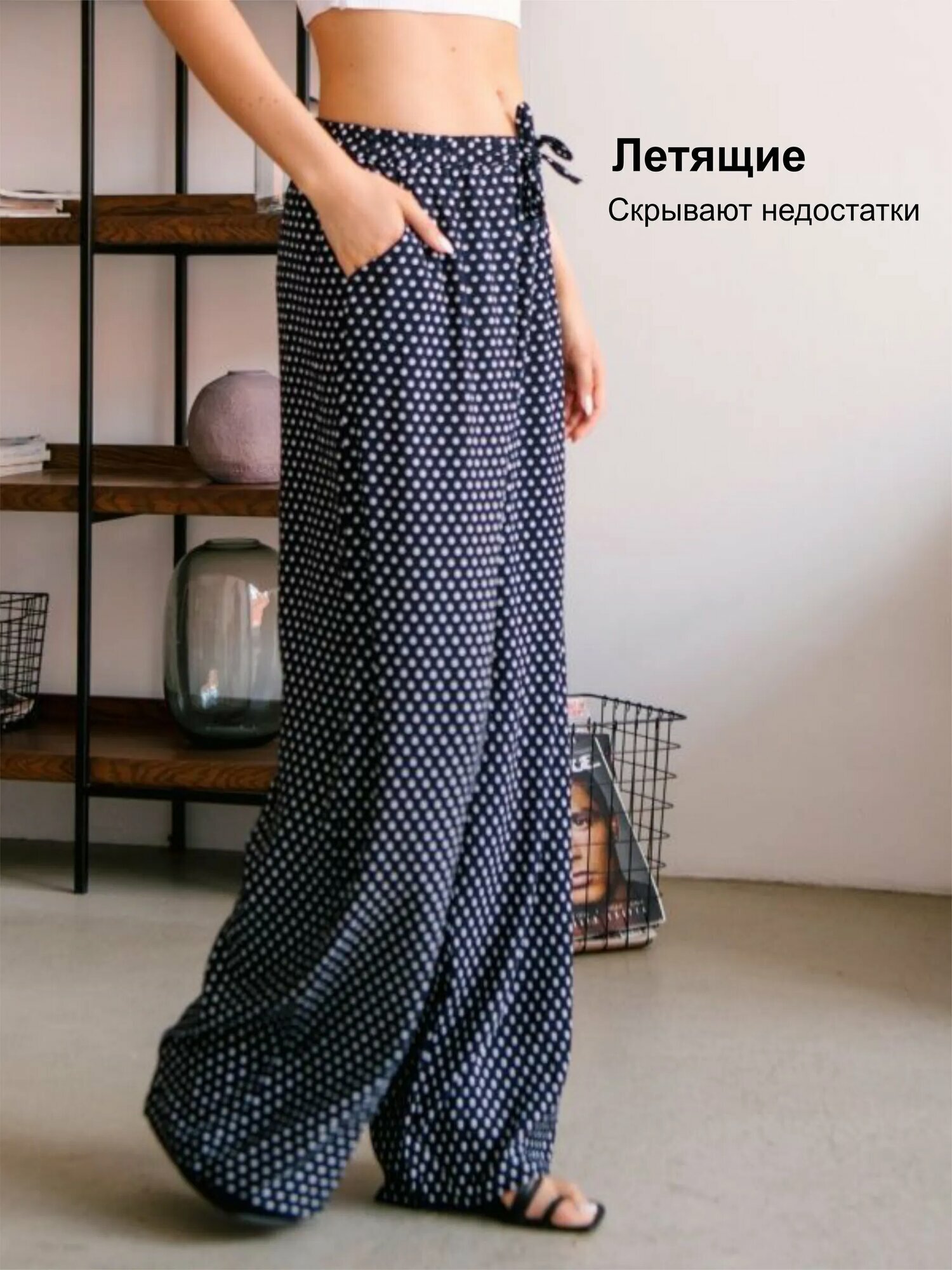 Брюки палаццо ZHaRko, размер 44, темно-синий/белый