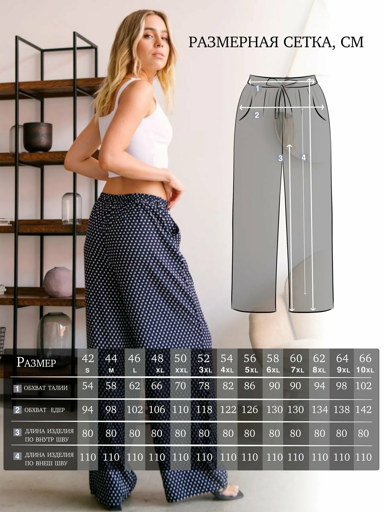 СохранитьБрюки палаццо ZHaRko, размер 66, синий/белый интересное: