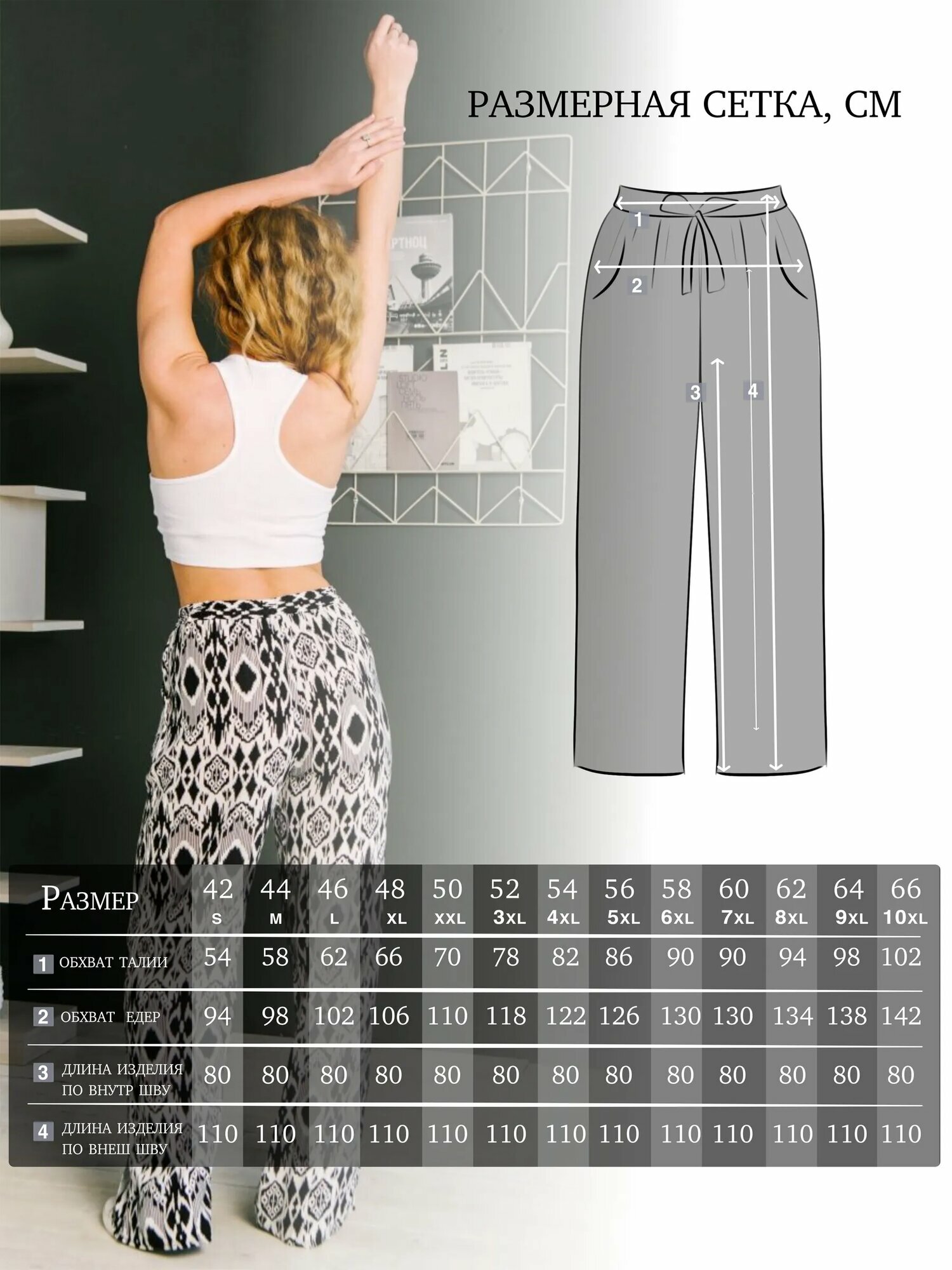 СохранитьБрюки палаццо ZHaRko, размер 62, черный, белый, серый интересное:
