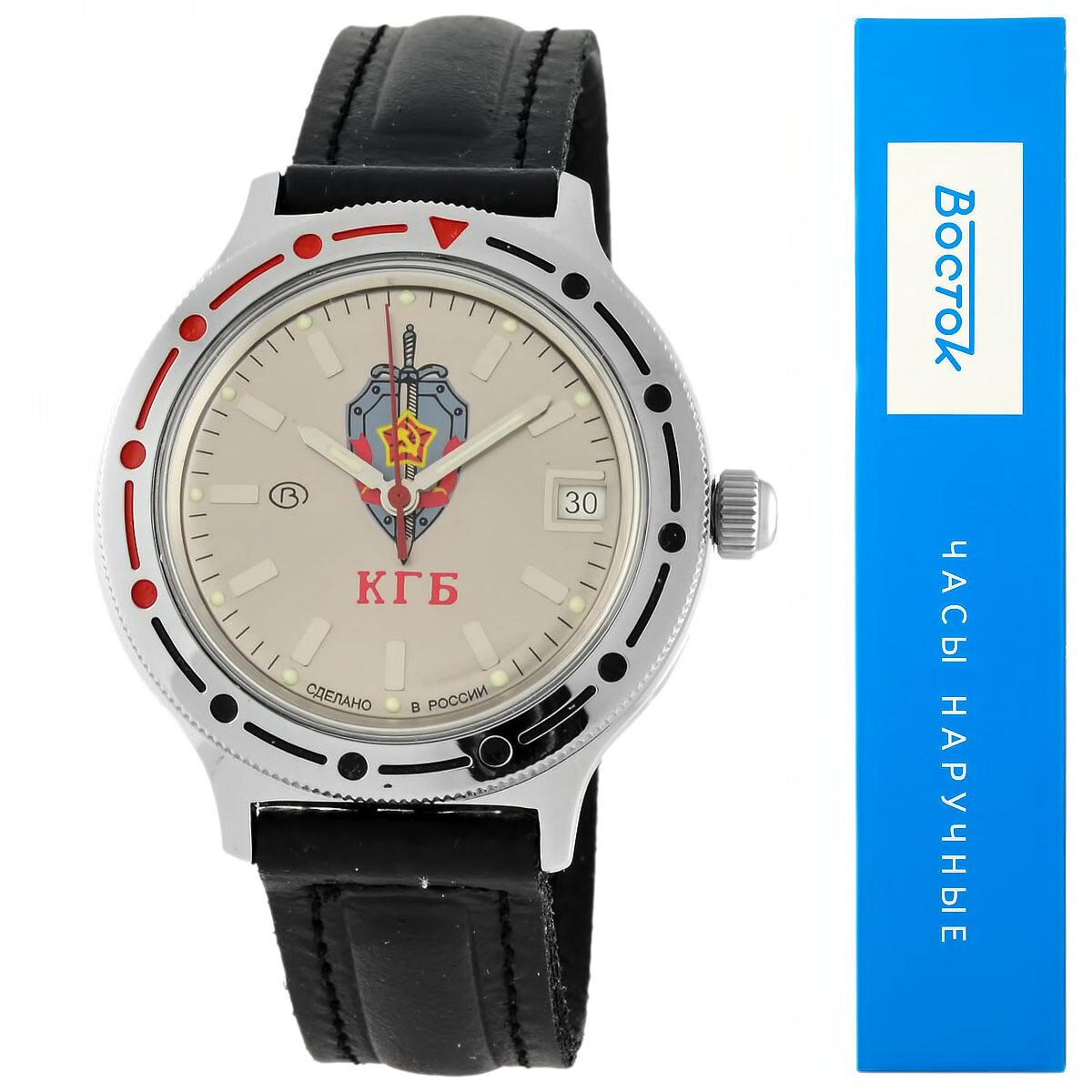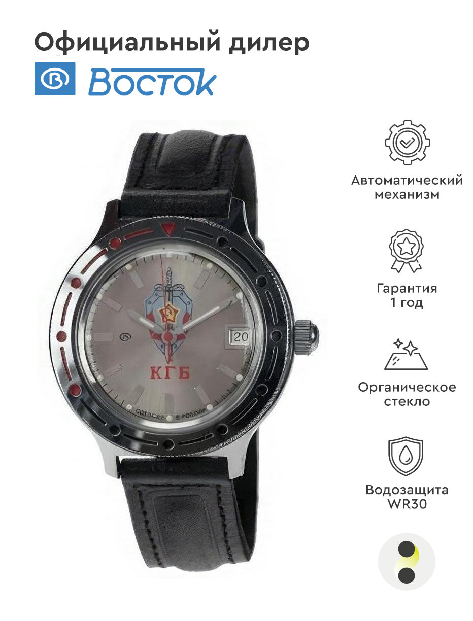 Мужские наручные часы Восток Командирские 921892-classic, натуральная кожа, черный