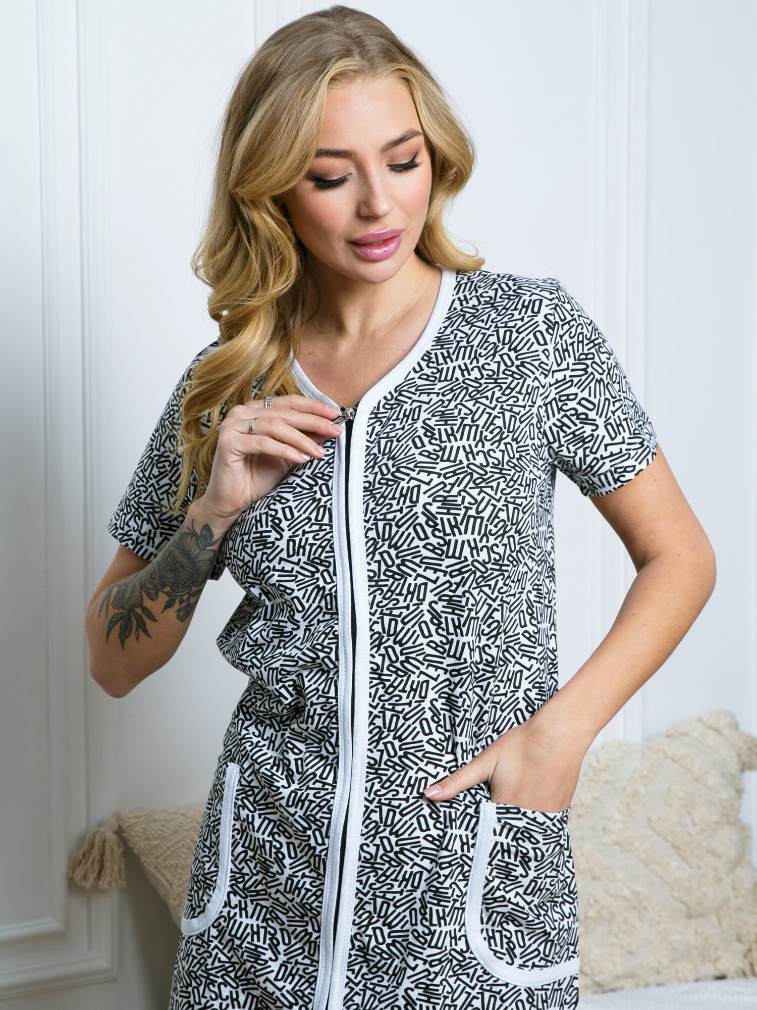 Халат Ohana market, размер 46, черно-белый