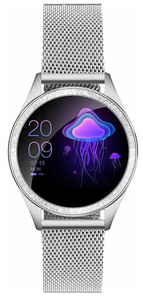 Женские наручные смарт часы KINGWEAR 20, влагозащищенные круглые умные часы с измерением пульса и давления, фитнес браслет с металлическим ремешком