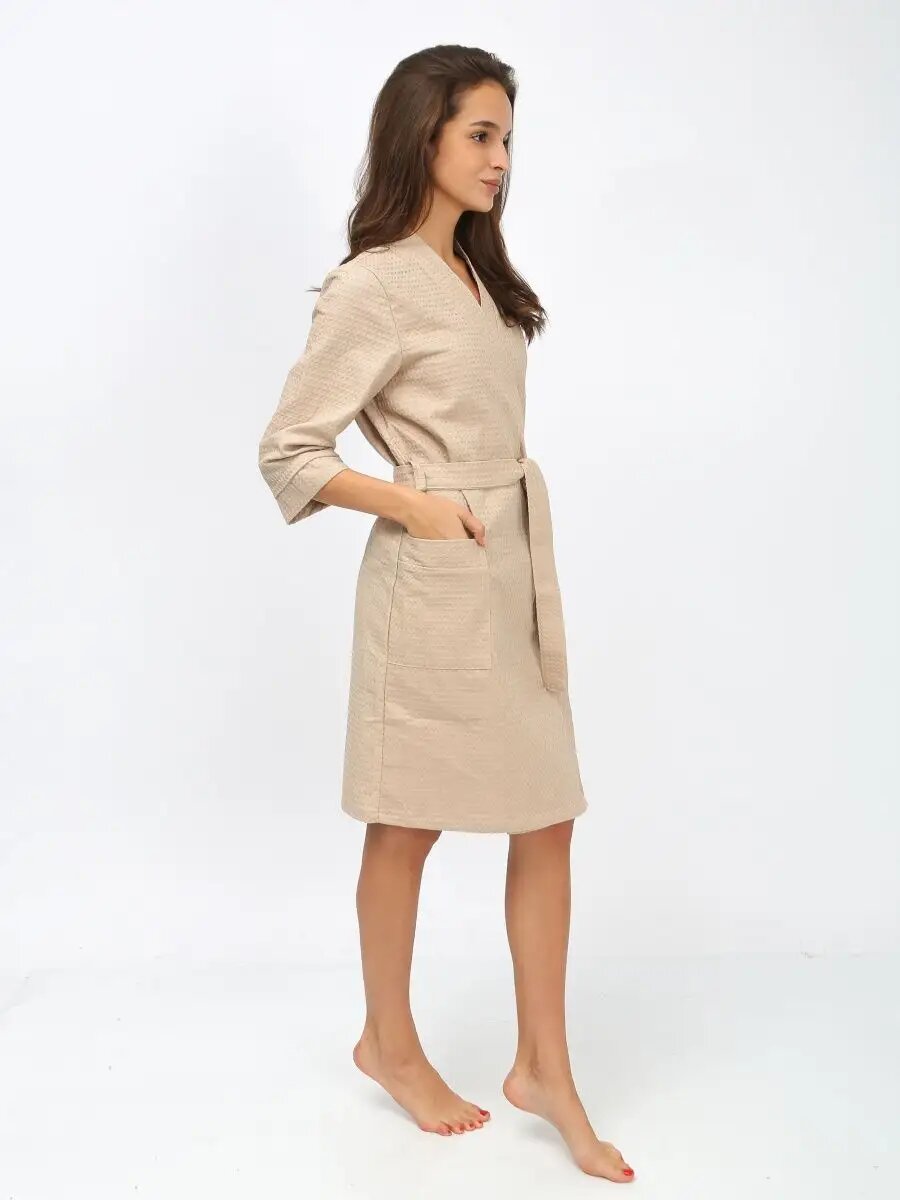 Купить Халат Иваново-Текстиль Халат для дома, бани, сауны, бассейна., размер 46, бежевый