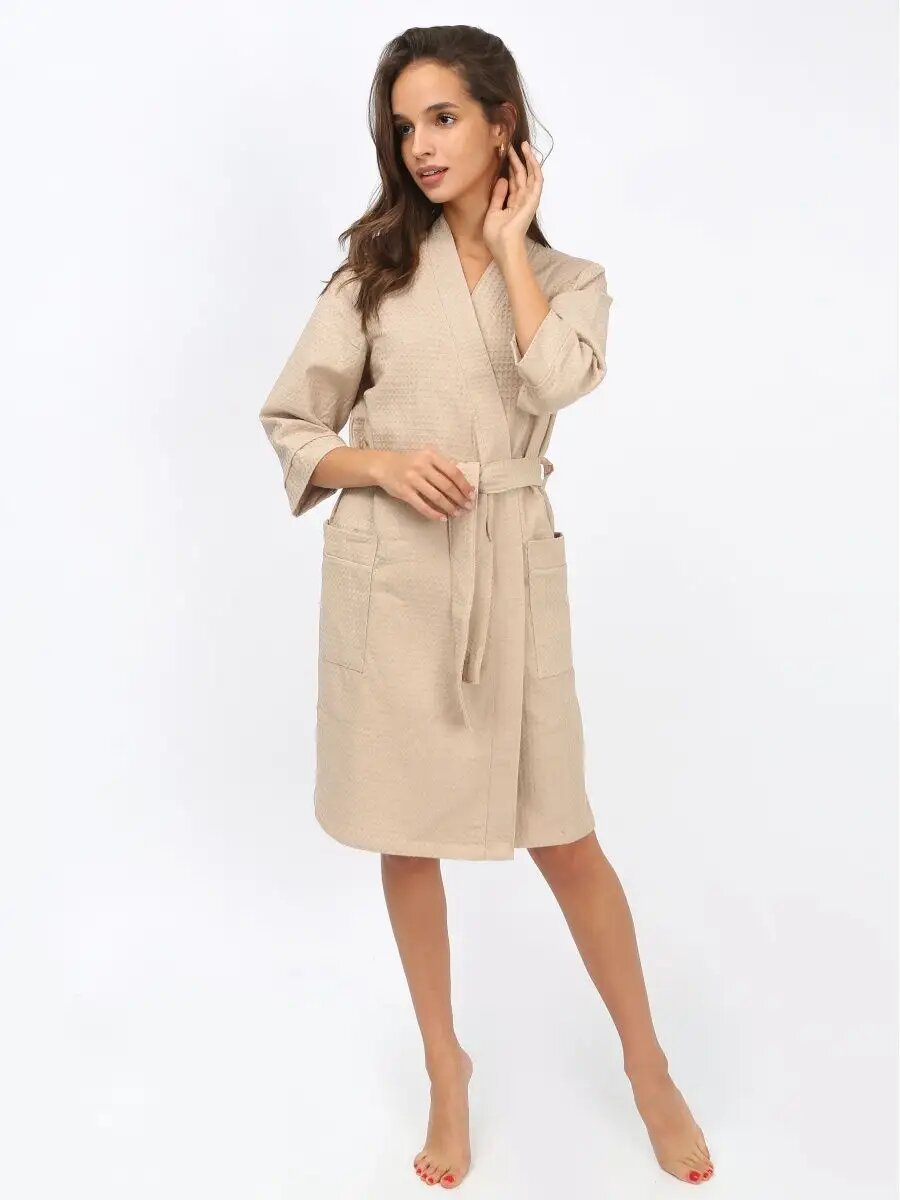 СохранитьХалат Иваново-Текстиль Халат для дома, бани, сауны, бассейна., размер 46, бежевый интересное: