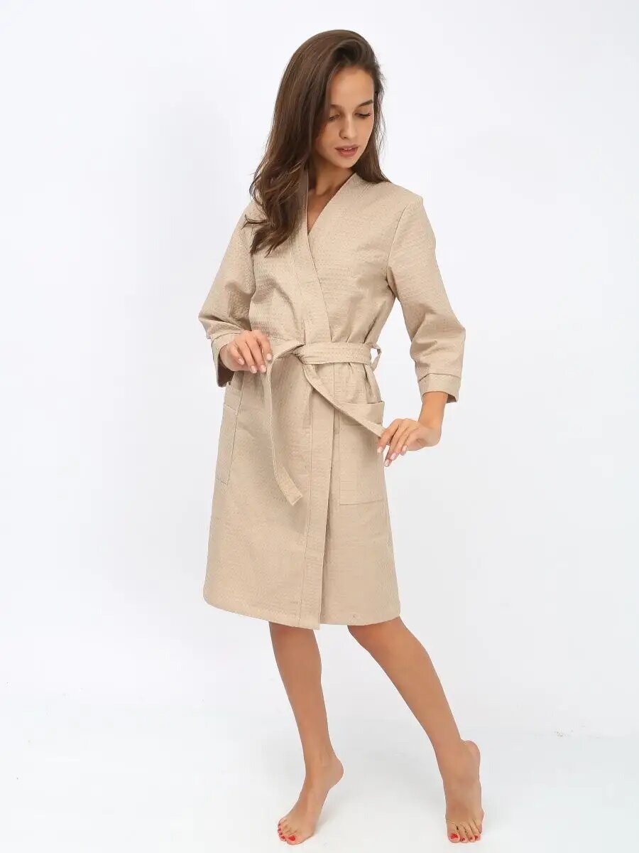 СохранитьХалат Иваново-Текстиль Халат для дома, бани, сауны, бассейна., размер 48, бежевый интересное: