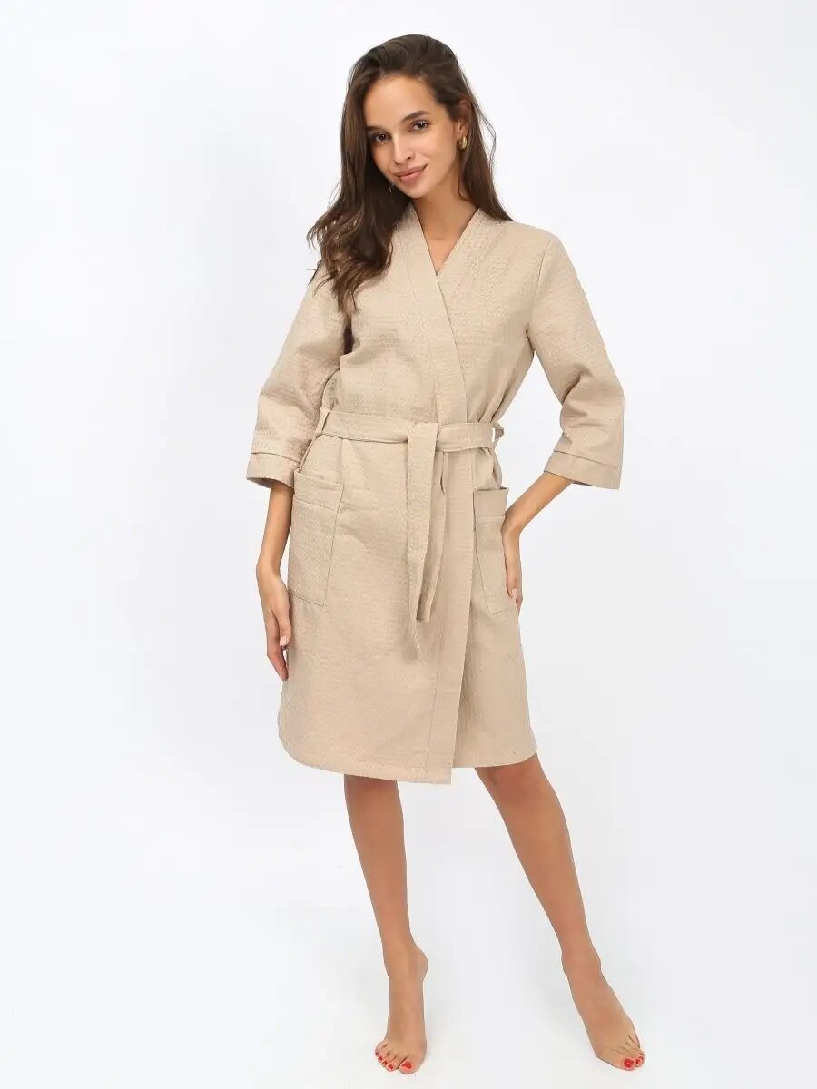 Купить Халат Иваново-Текстиль Халат для дома, бани, сауны, бассейна., размер 48, бежевый