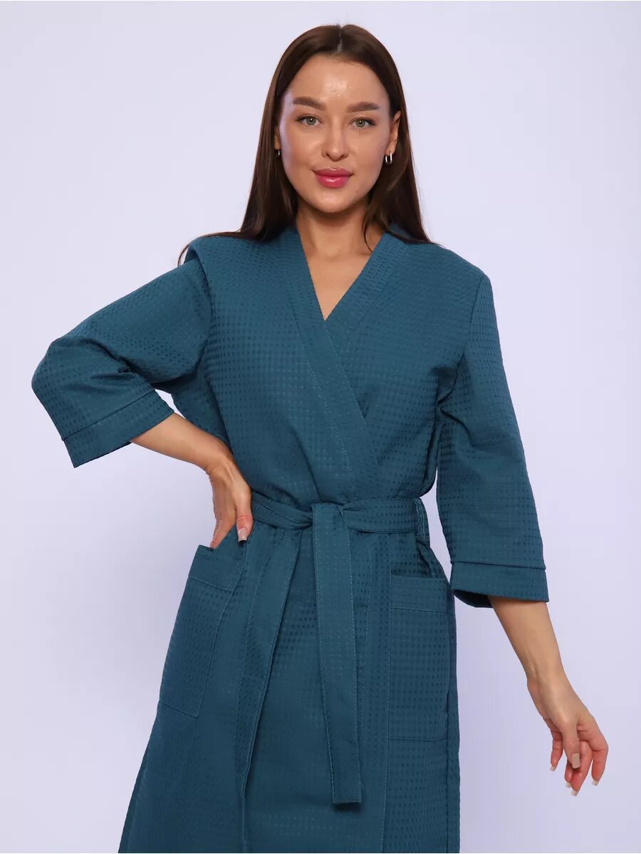 Халат Иваново-Текстиль Халат для дома, бани, сауны, бассейна., размер 42, бирюзовый