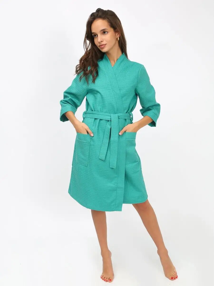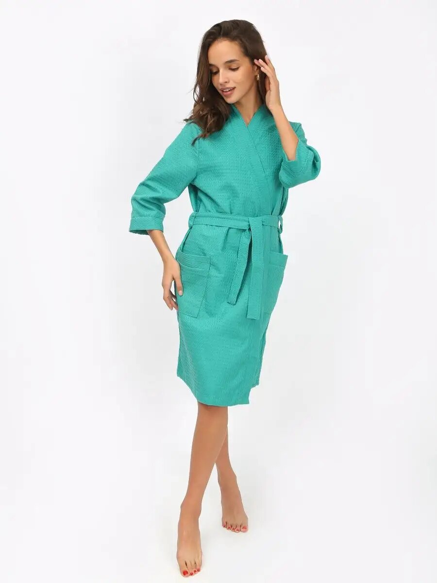 Купить Халат Иваново-Текстиль Халат для дома, бани, сауны, бассейна., размер 46, бирюзовый
