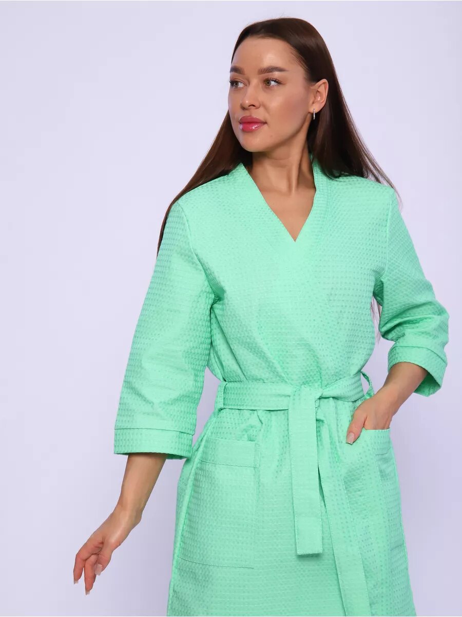 СохранитьХалат Иваново-Текстиль Халат для дома, бани, сауны, бассейна., размер 52, фисташковый интересное: