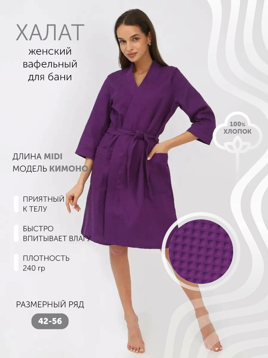 Халат Иваново-Текстиль Халат для дома, бани, сауны, бассейна., размер 52, василек