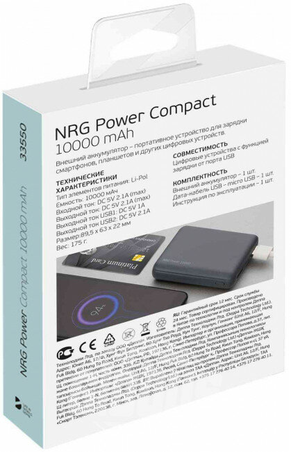 Внешний аккумулятор NRG Power Compact 10000 mAh, 2.1A, 2xUSB
