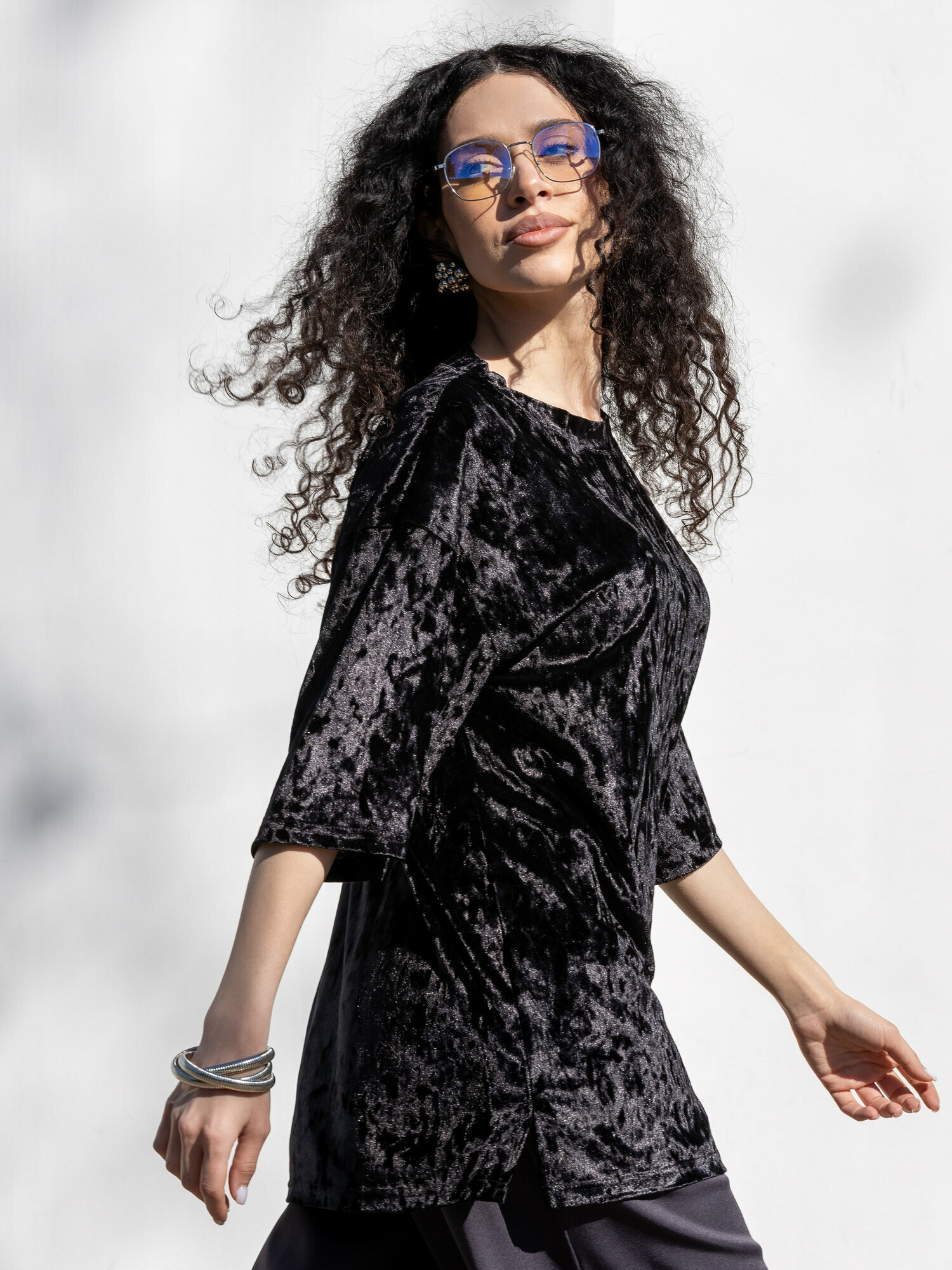 Футболка BUY-TEX.RU женская, велюровая, оверсайз, размер 44, черный