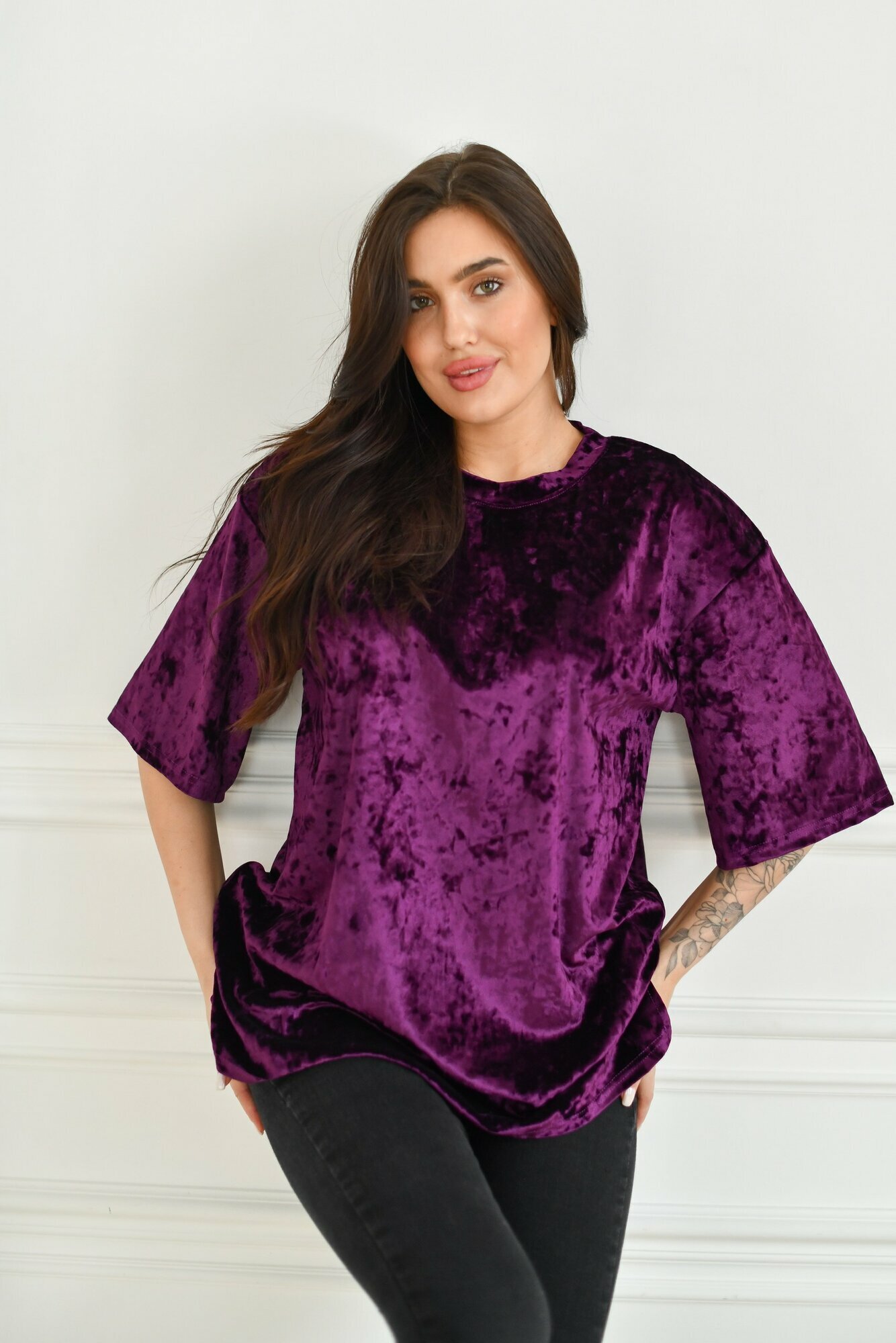 Футболка BUY-TEX.RU женская, велюровая, оверсайз, размер 44, фиолетовый