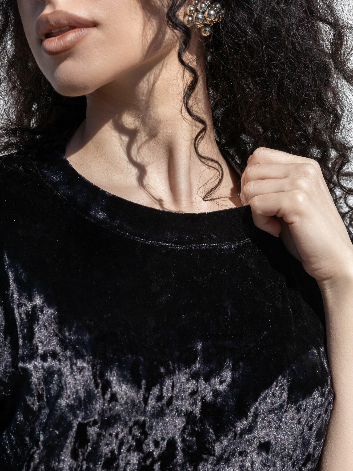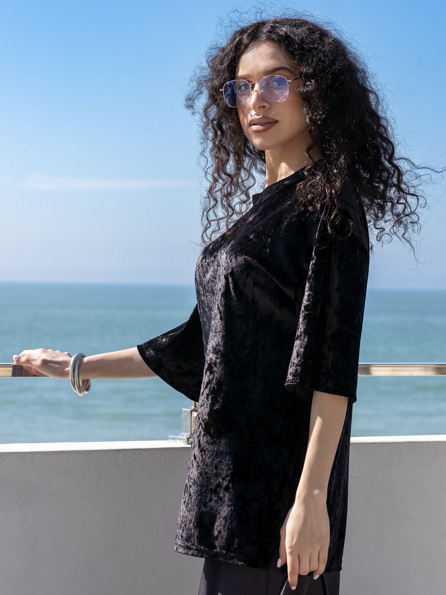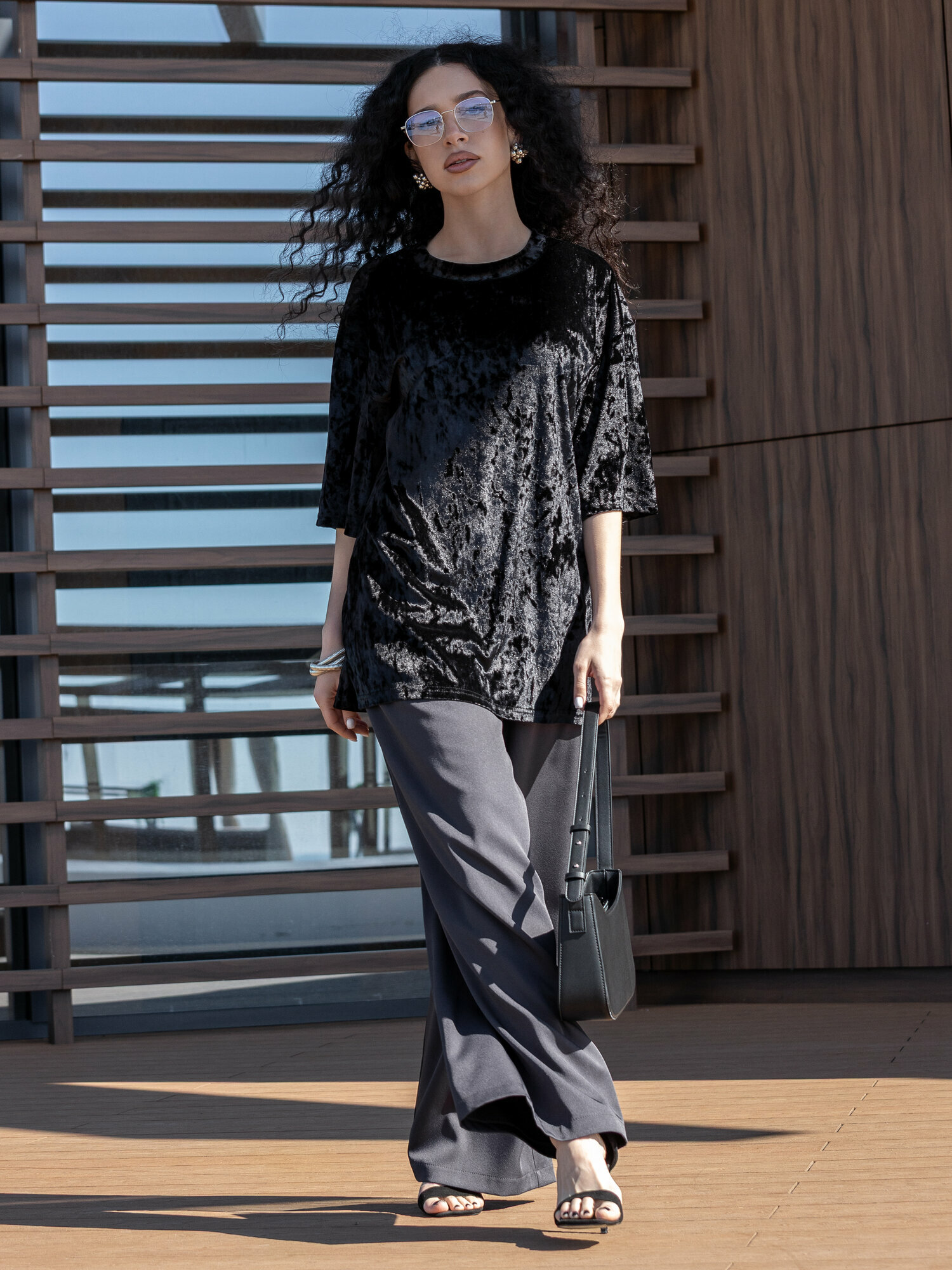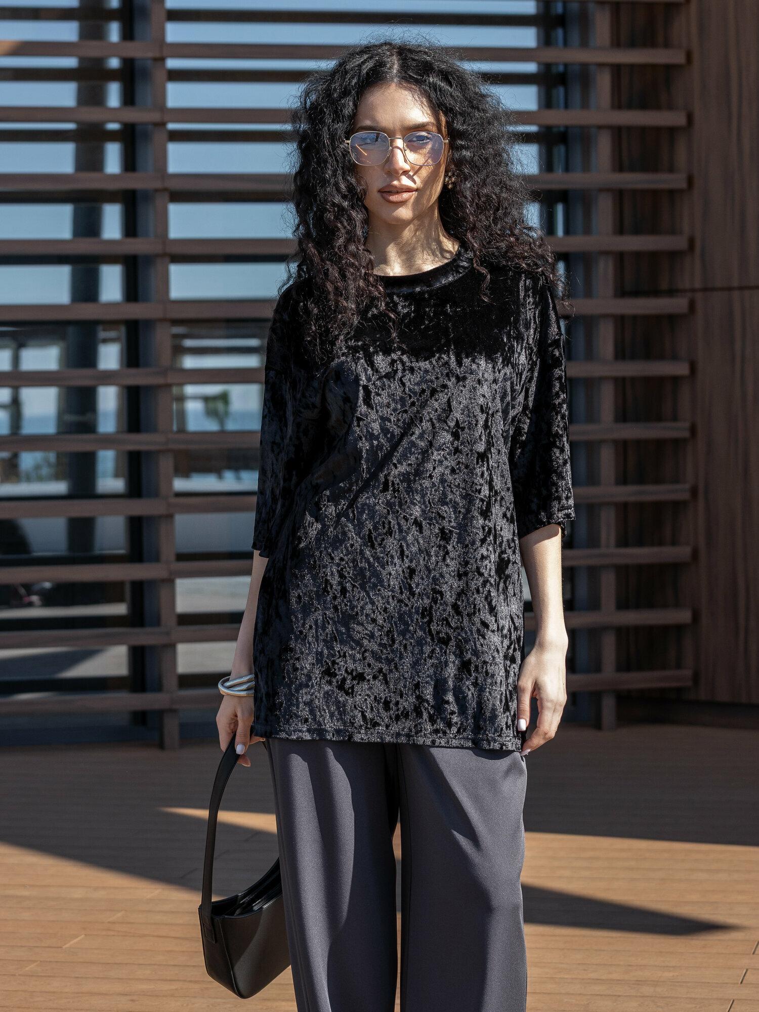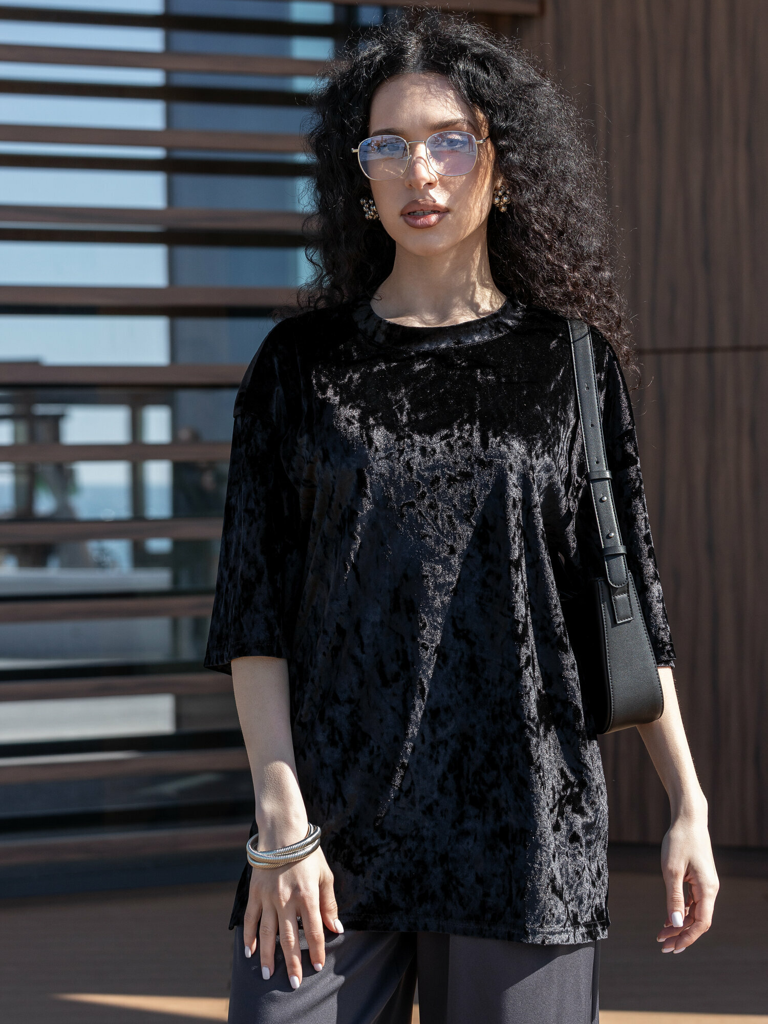 Футболка BUY-TEX.RU женская, велюровая, оверсайз, размер 44, черный