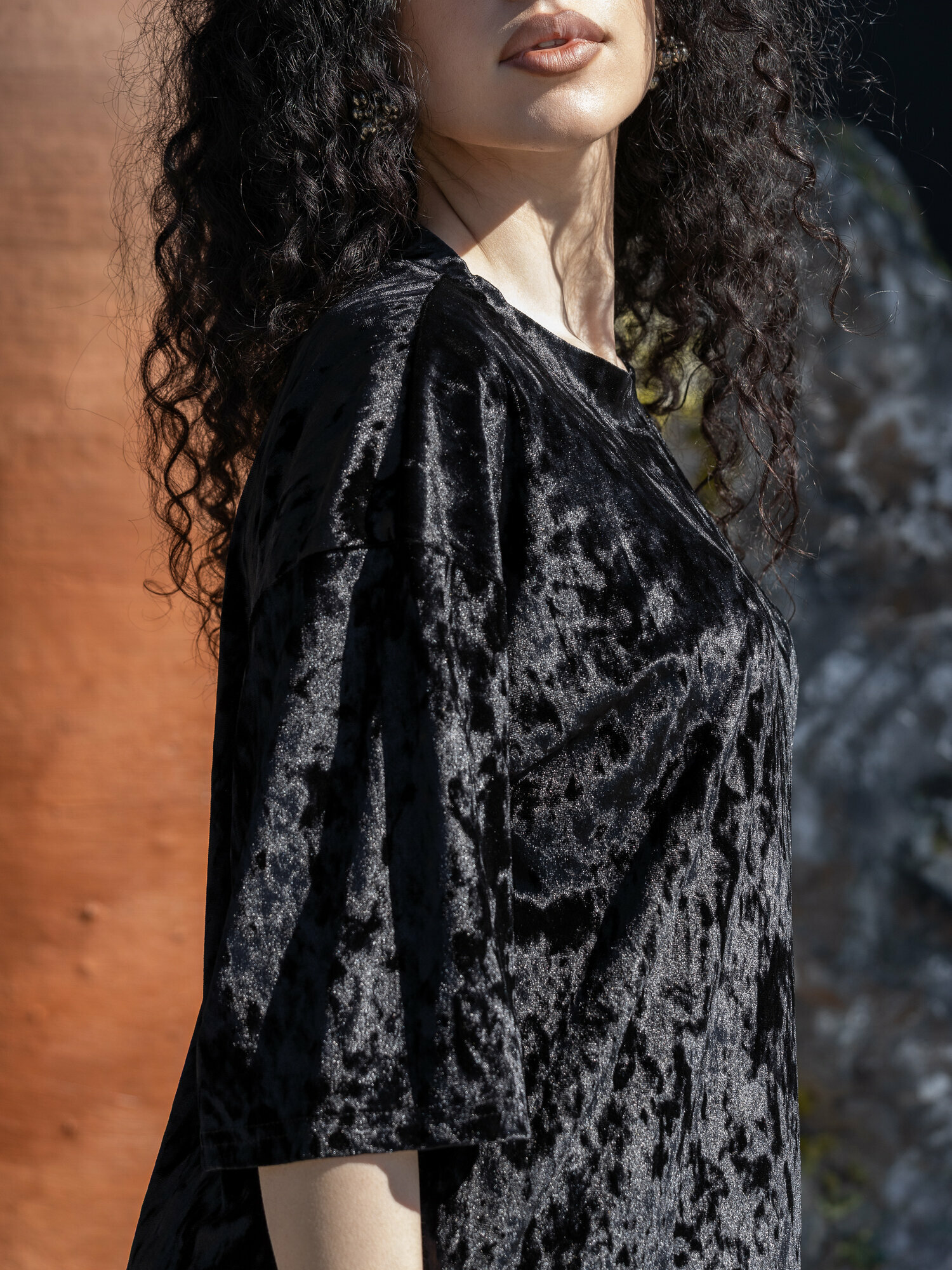 Футболка BUY-TEX.RU женская, велюровая, оверсайз, размер 50, черный